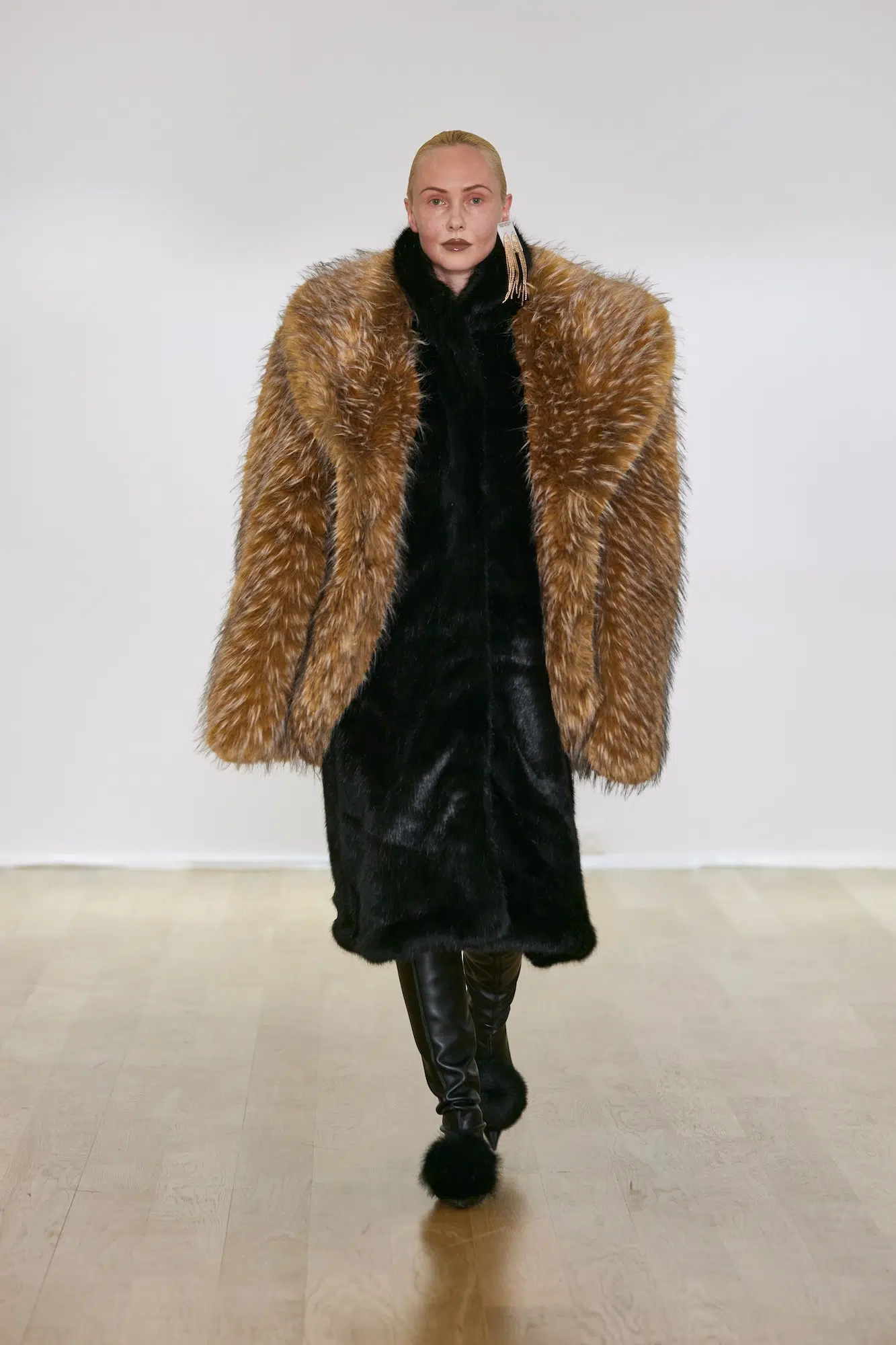 La propuesta FW25 de ABRA evoca la nostalgia de esas tiendas de moda locales que dominaron los años 80, esas a las que acudían las mujeres para encontrar el look perfecto para una ocasión especial. De esta forma, y con un pie en el pasado y otro en el presente, el diseñador ofrece una serie de prendas exquisitas que no solo celebran este recuerdo sino que lo transforman en una colección contemporánea de estética sofisticada y atemporal.