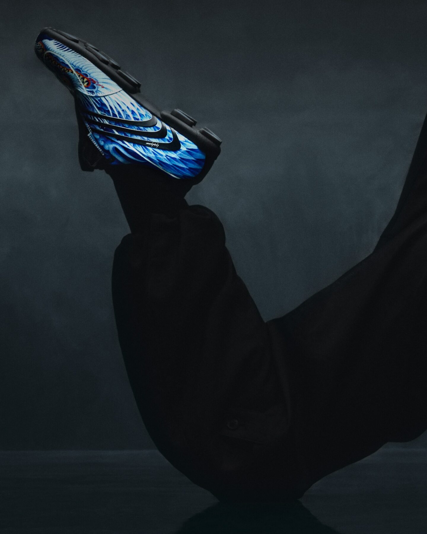 El renacimiento tuvo lugar en París, durante el desfile FW26 de Y-3, donde el modelo irrumpió con fuerza sobre la pasarela y desveló dos vertientes: una versión lifestyle y otra orientada al terreno de juego. La primera recupera la esencia mitológica japonesa que definió el pack original: el dragón azul, el tigre amarillo, el águila roja y el lobo plateado vuelven a cobrar vida. En paralelo, la versión performance se centra en el lobo como figura dominante.