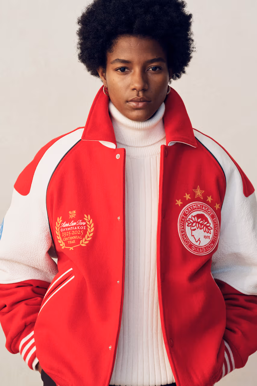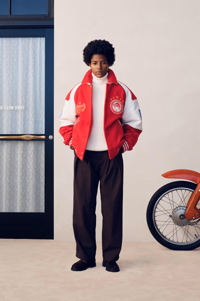 El ADN preppy de la firma se mantiene con trajes entallados y chándales de espiga. También hay un guiño deportivo con las chaquetas varsity de los Yankees y los Mets. Además, ALD explora las raíces griegas de Santis mediante una colaboración exclusiva con el Olympiacos FC, la primera entre ambas entidades.