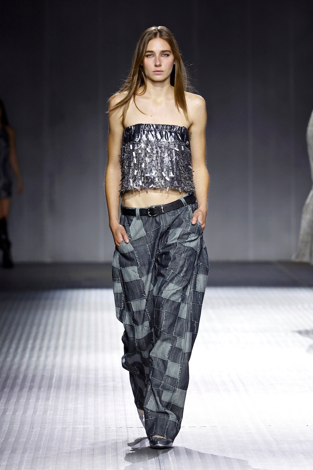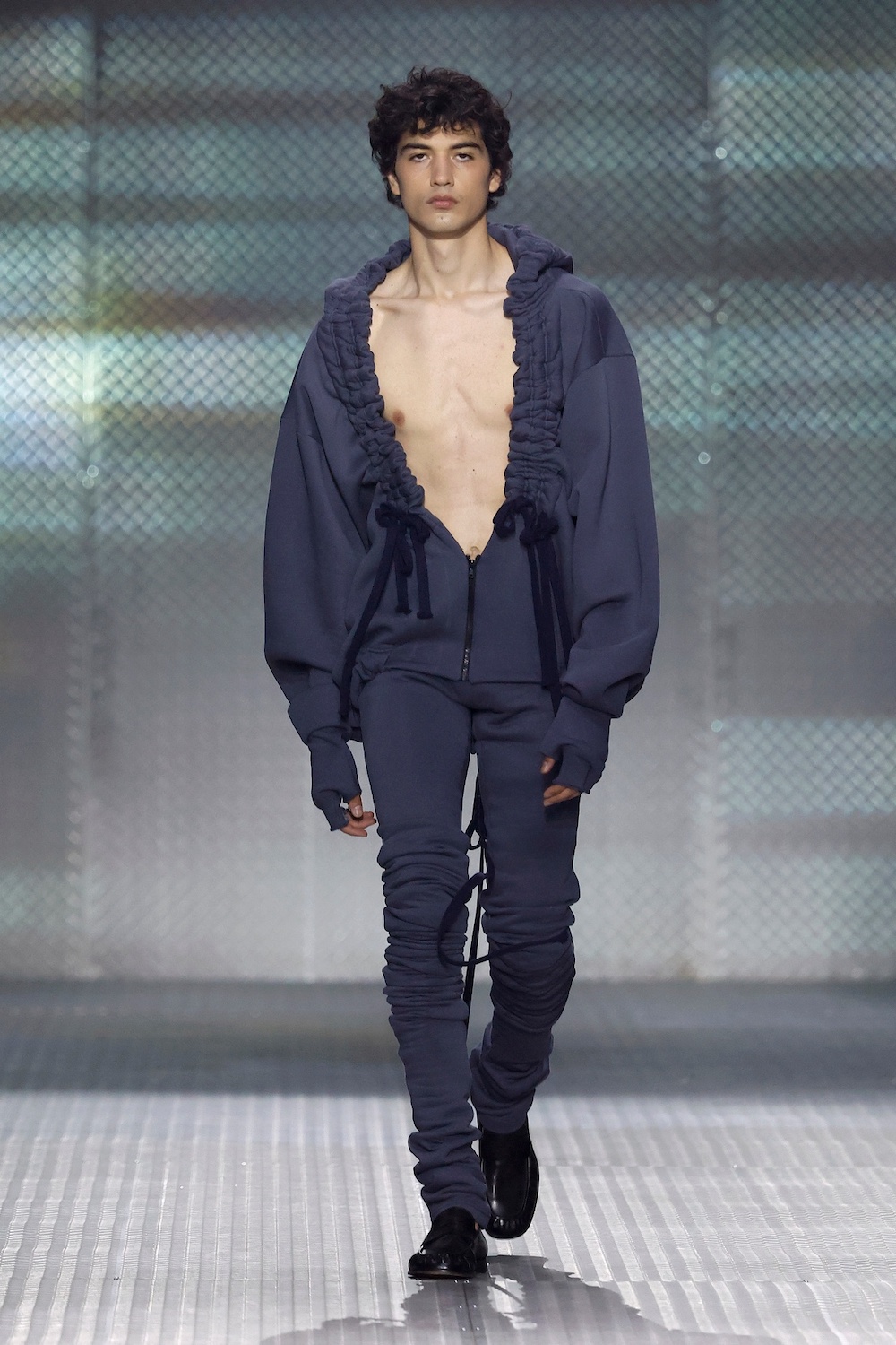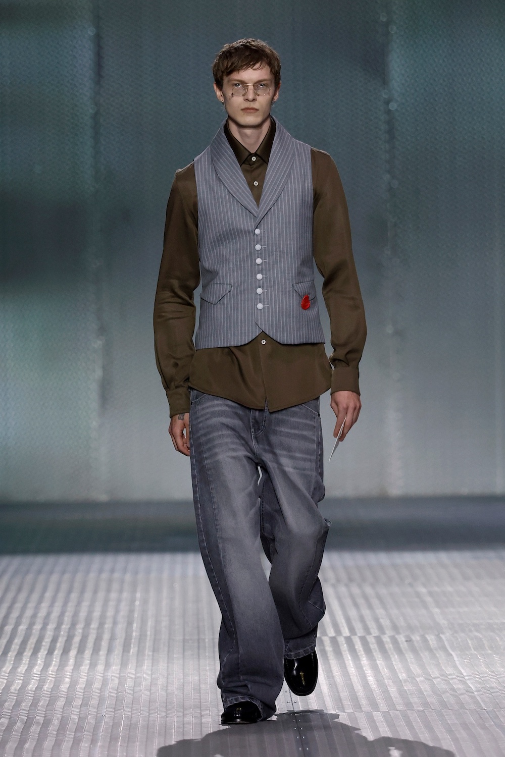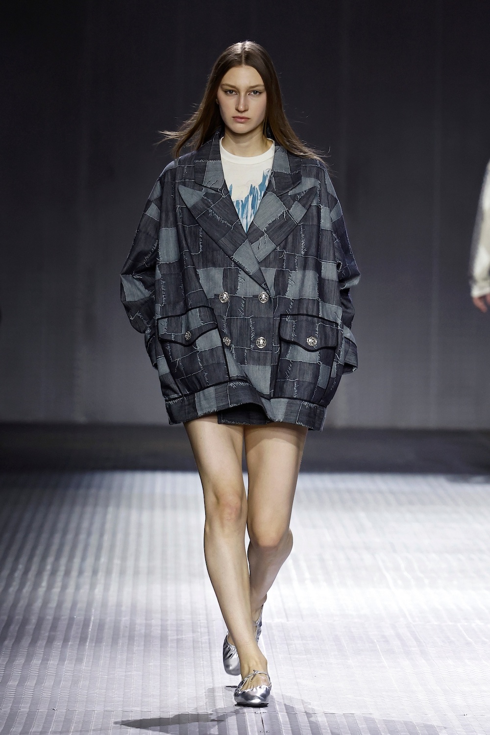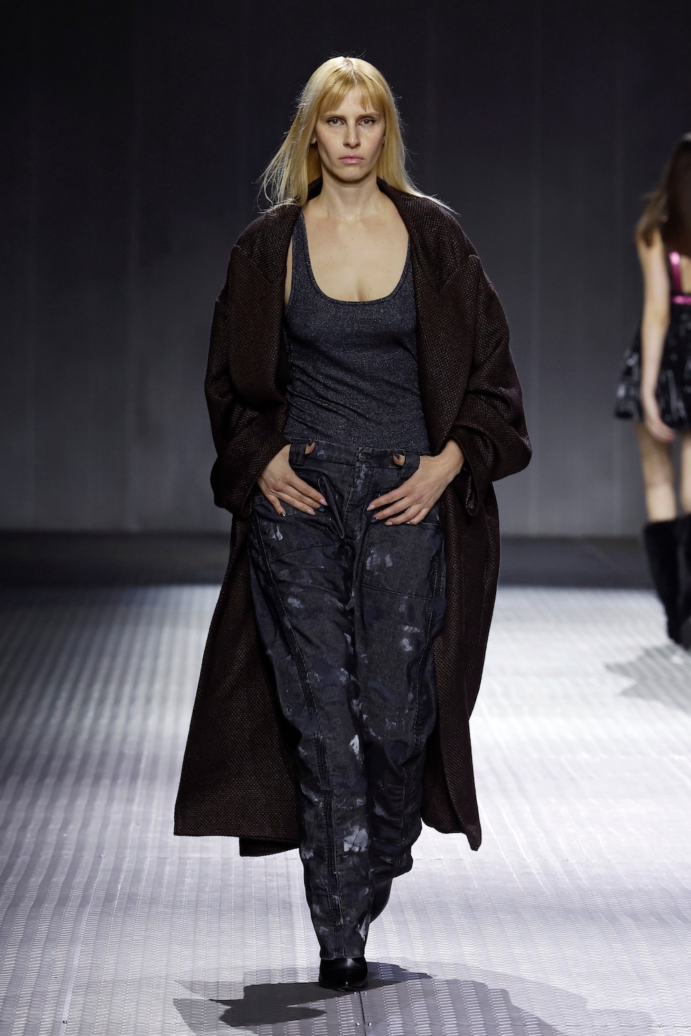 La propuesta exploraba la dualidad entre fuerza y sensibilidad: cuero, vaquero y abrigos de doble cara convivían en tonos pastel y colores más contundentes, a la vez que reivindicaban la suavidad como forma de protección. En colaboración con Vinted, la firma recontextualizaba los símbolos de consumo como crítica a la identidad performativa, reforzando así su visión inclusiva y la slow fashion.