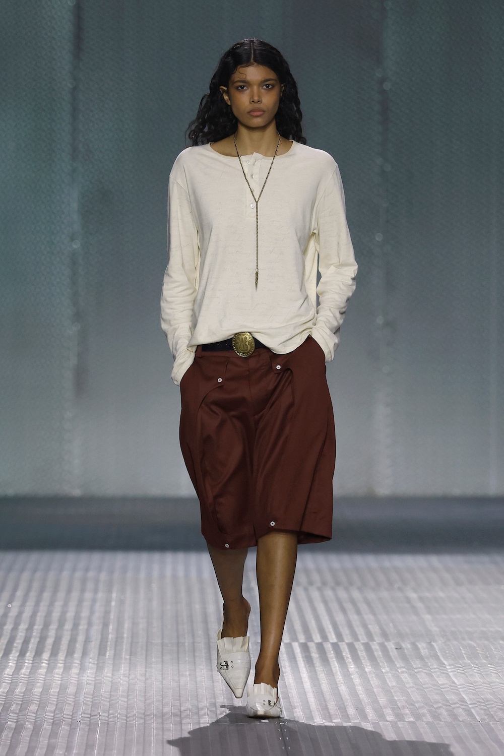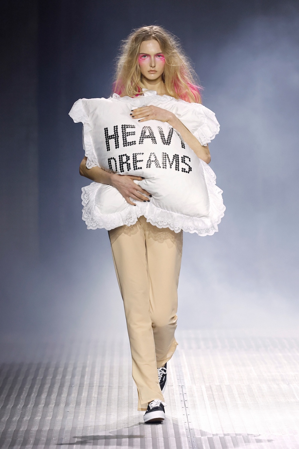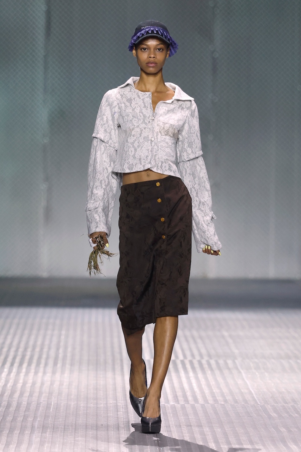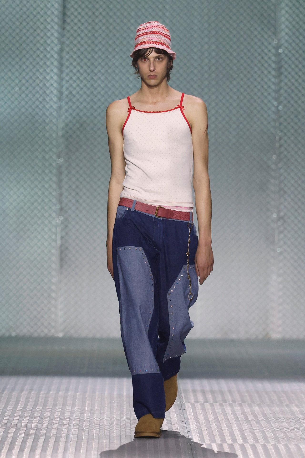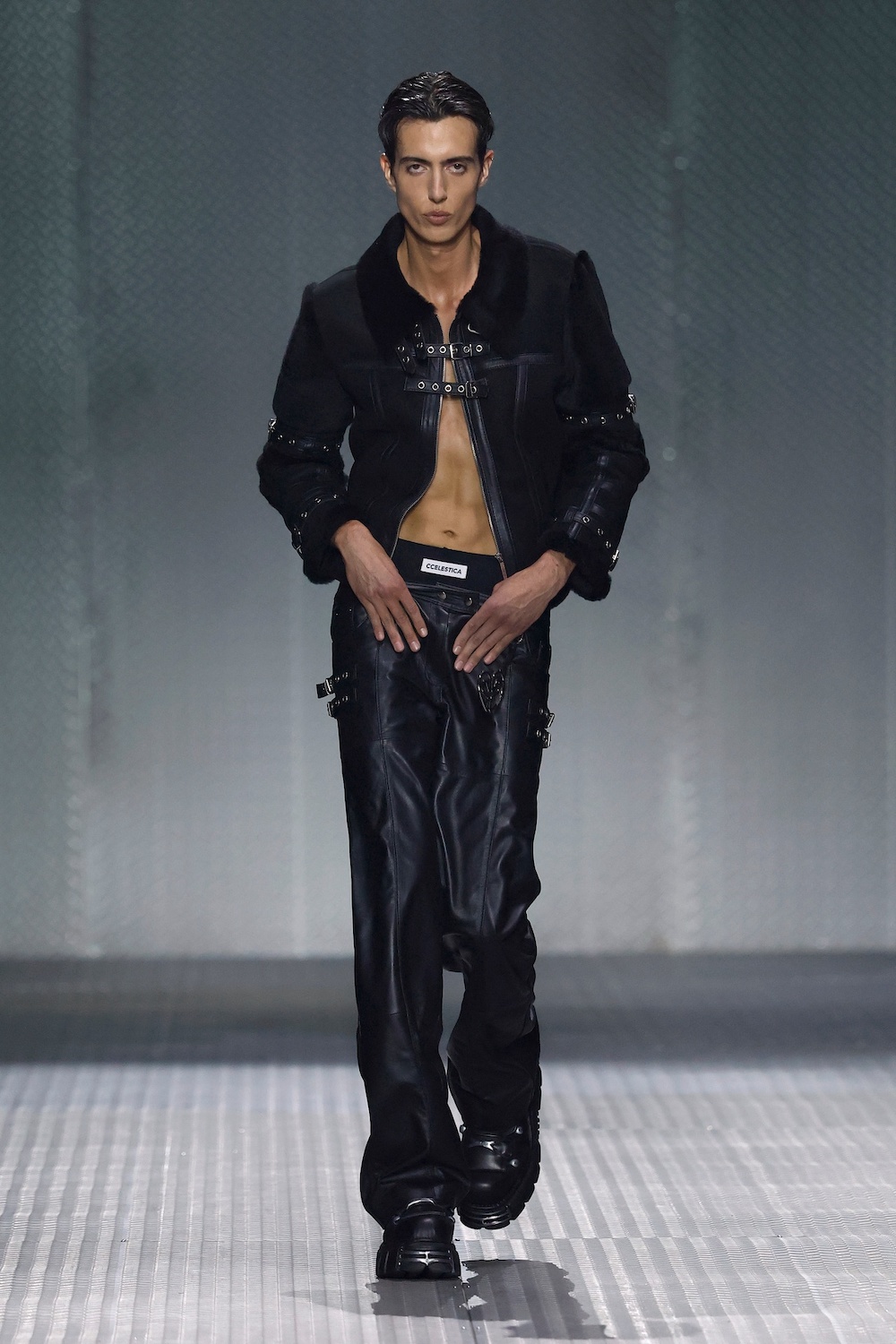 La propuesta exploraba la dualidad entre fuerza y sensibilidad: cuero, vaquero y abrigos de doble cara convivían en tonos pastel y colores más contundentes, a la vez que reivindicaban la suavidad como forma de protección. En colaboración con Vinted, la firma recontextualizaba los símbolos de consumo como crítica a la identidad performativa, reforzando así su visión inclusiva y la slow fashion.
