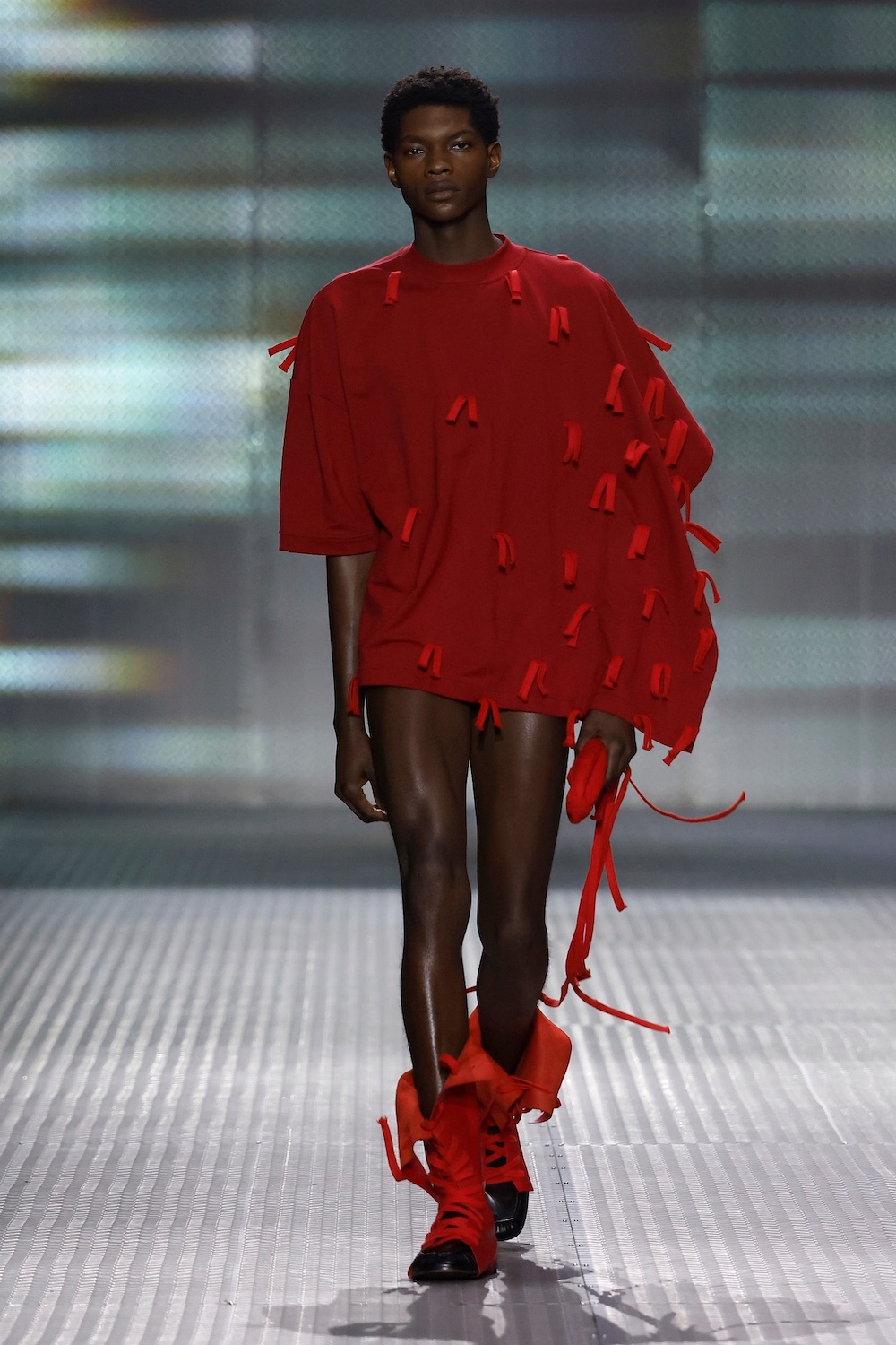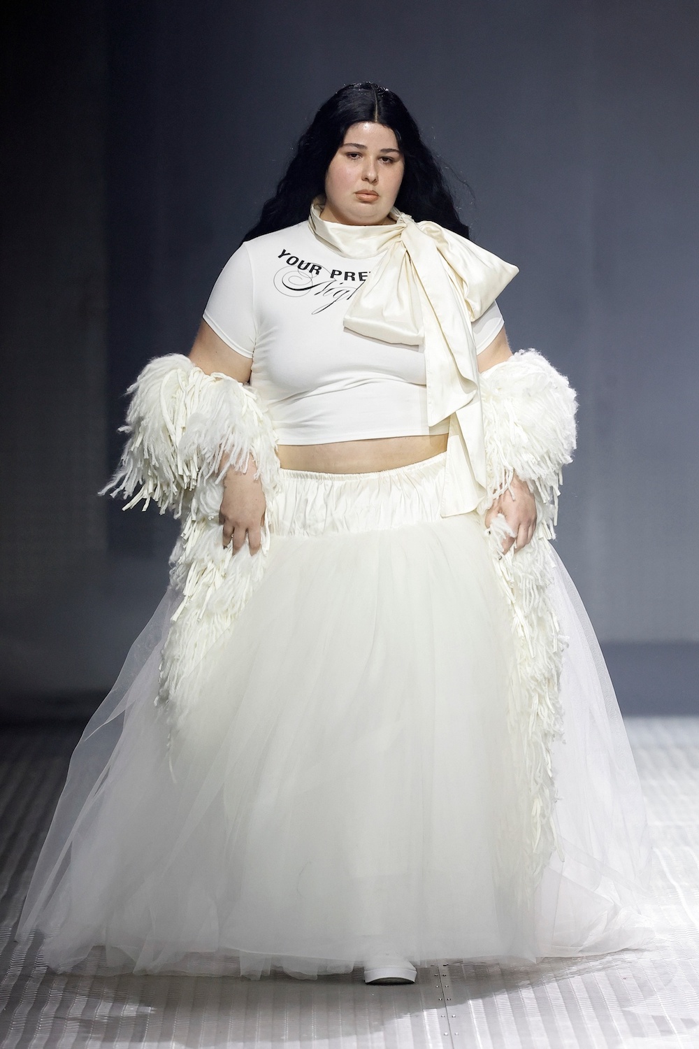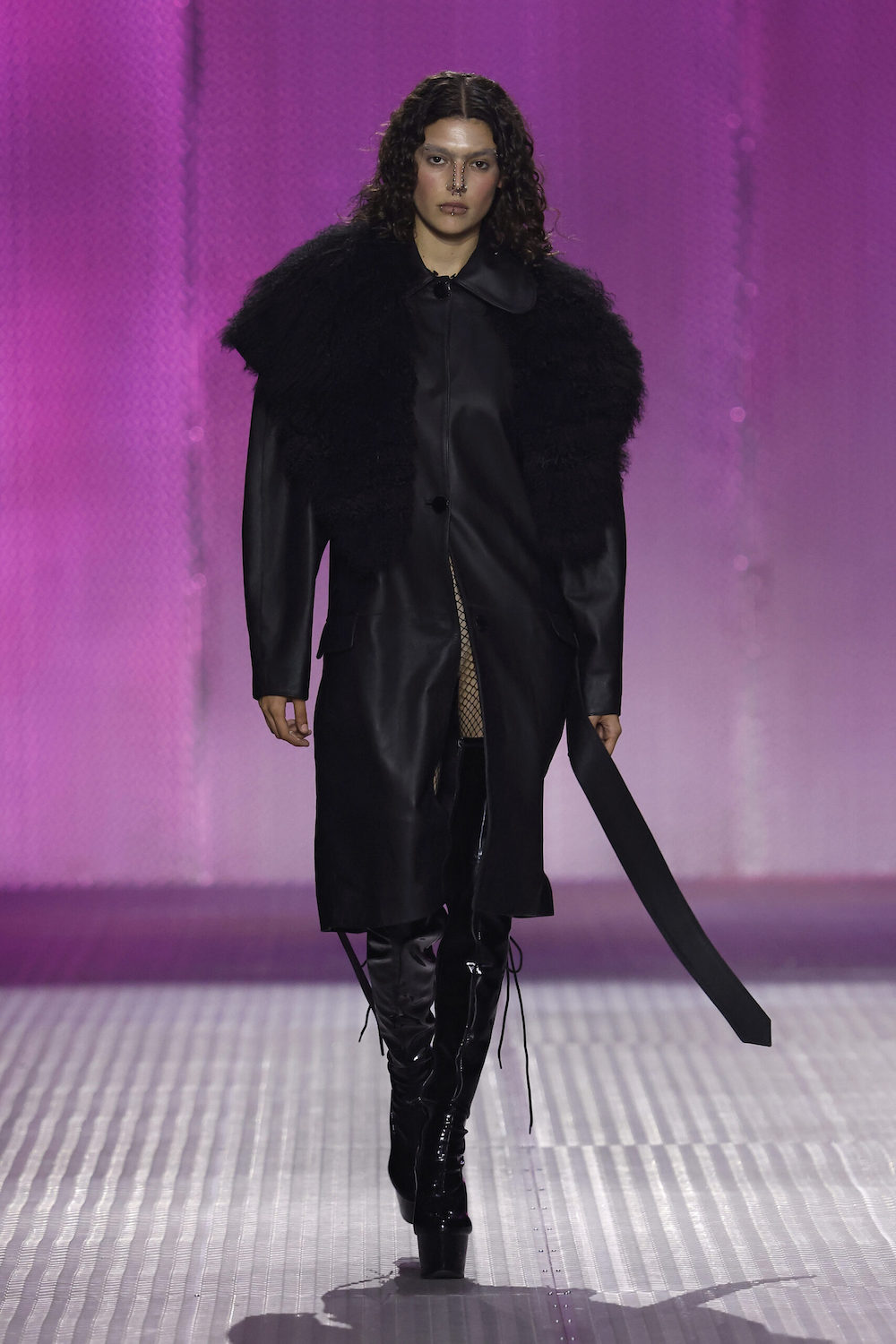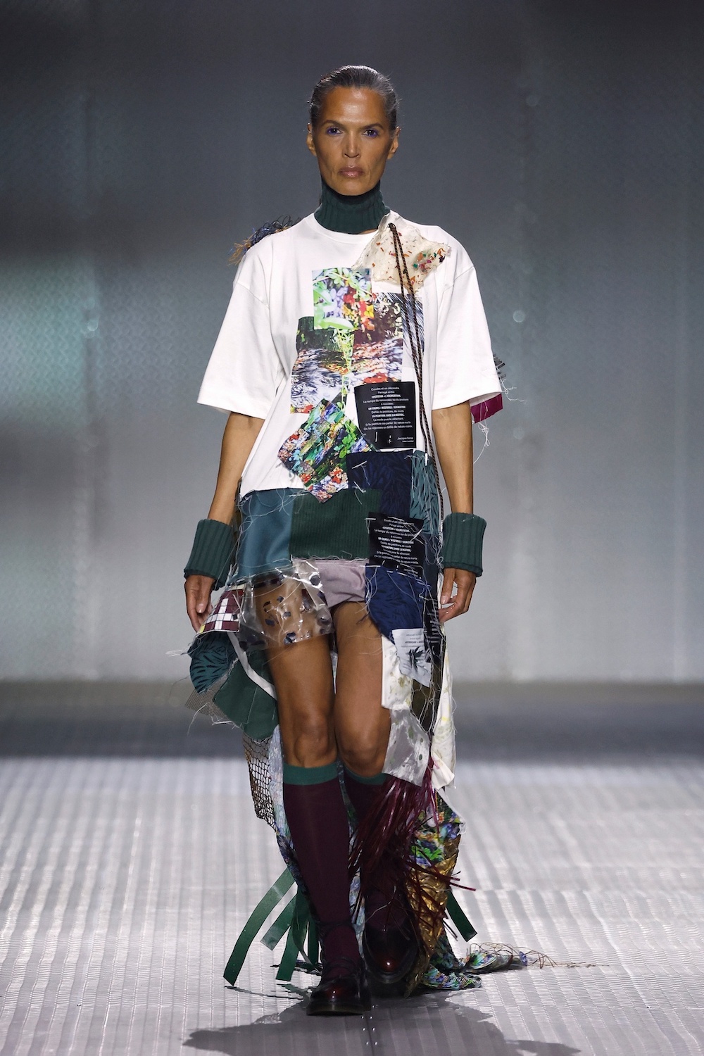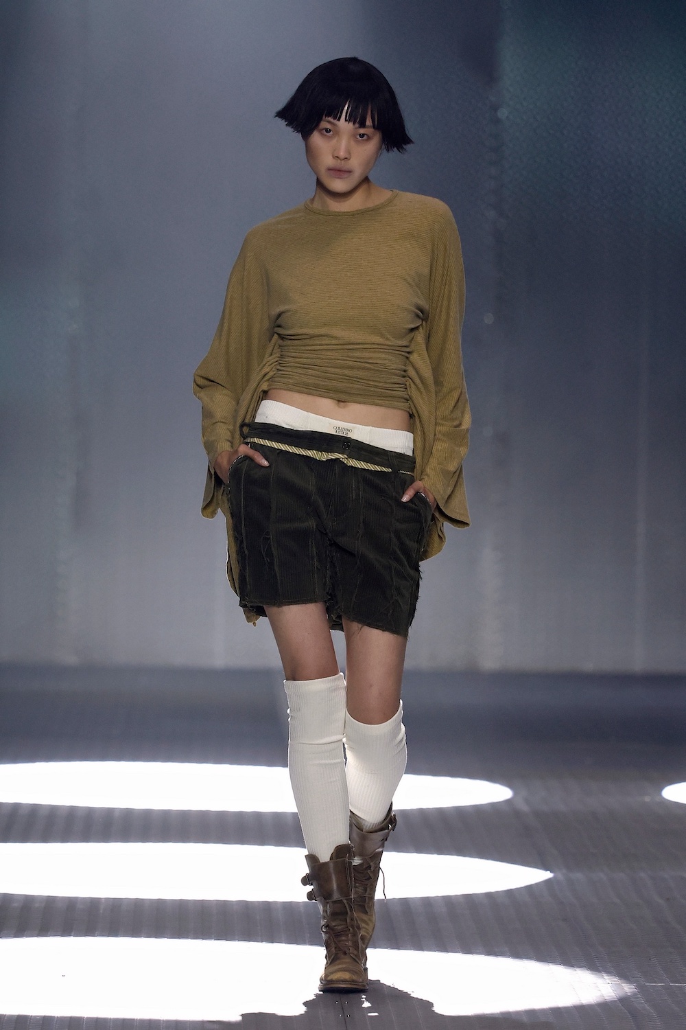 La propuesta exploraba la dualidad entre fuerza y sensibilidad: cuero, vaquero y abrigos de doble cara convivían en tonos pastel y colores más contundentes, a la vez que reivindicaban la suavidad como forma de protección. En colaboración con Vinted, la firma recontextualizaba los símbolos de consumo como crítica a la identidad performativa, reforzando así su visión inclusiva y la slow fashion.