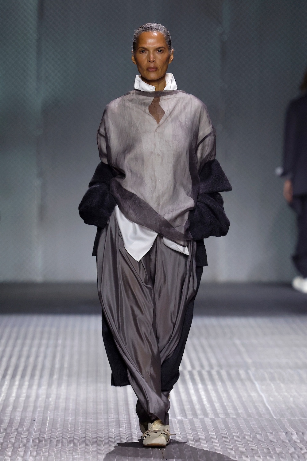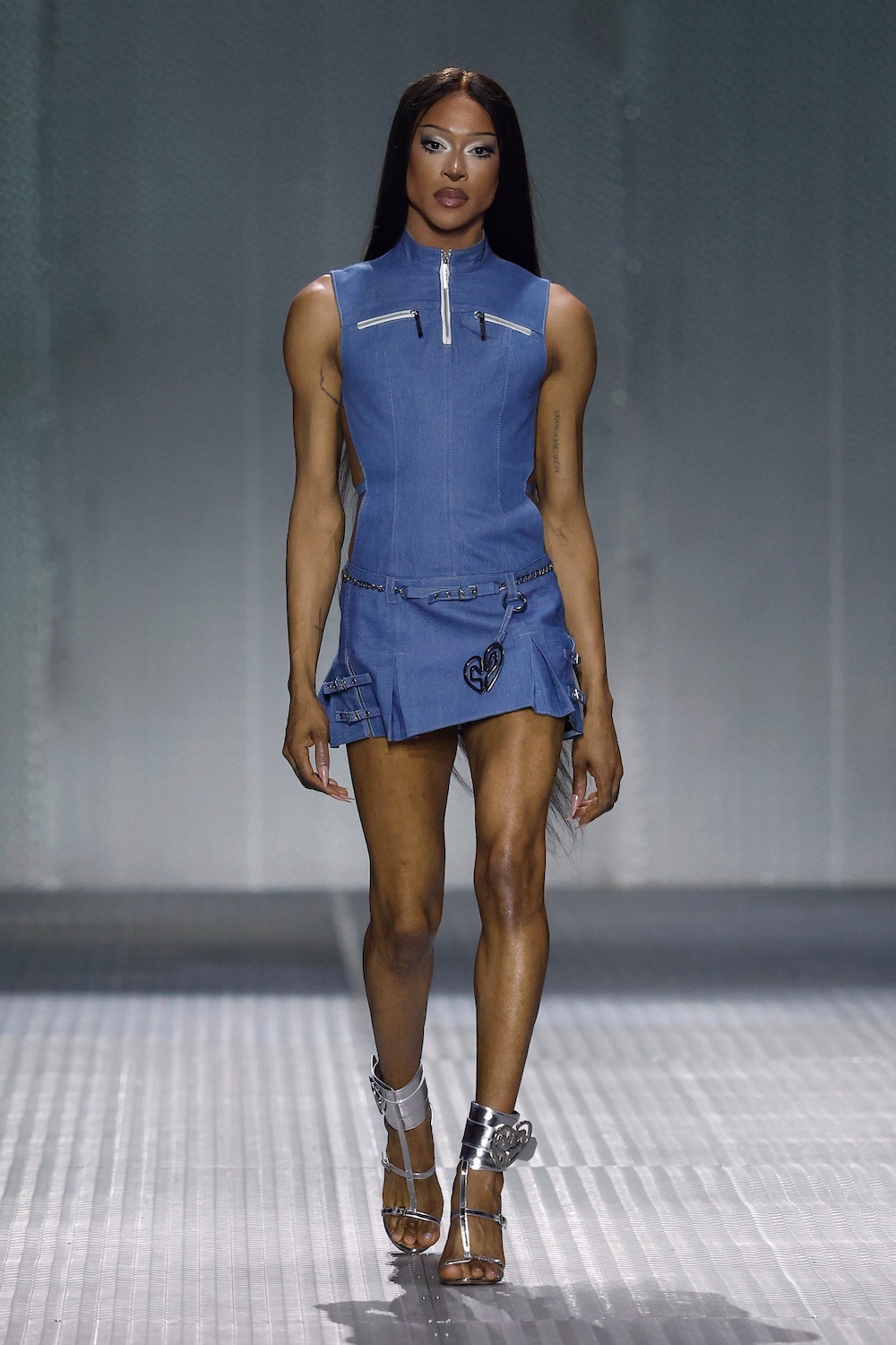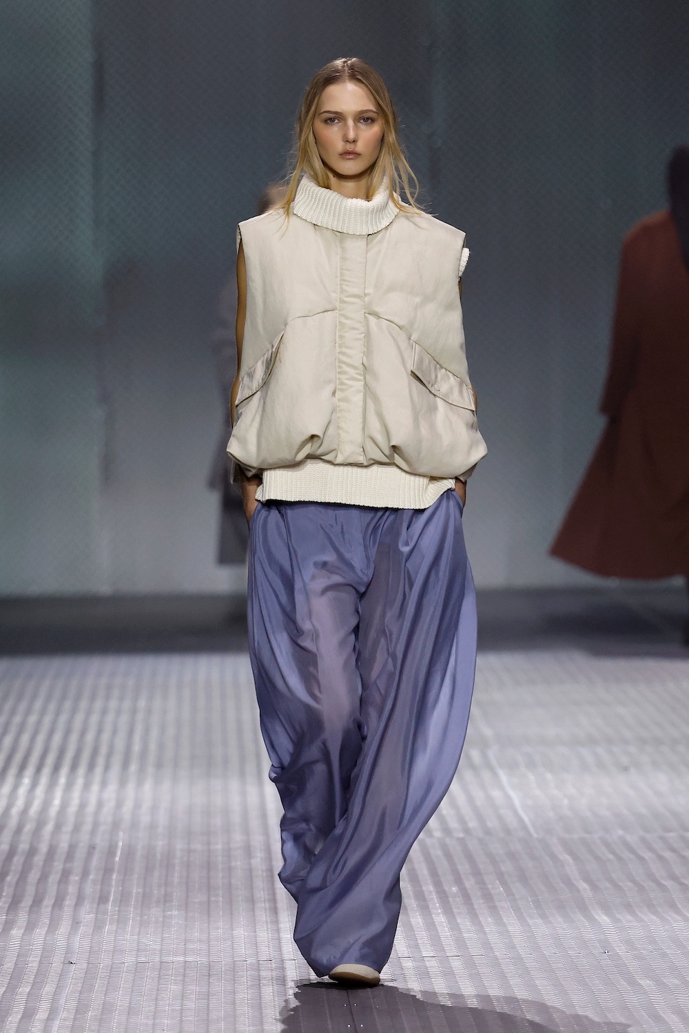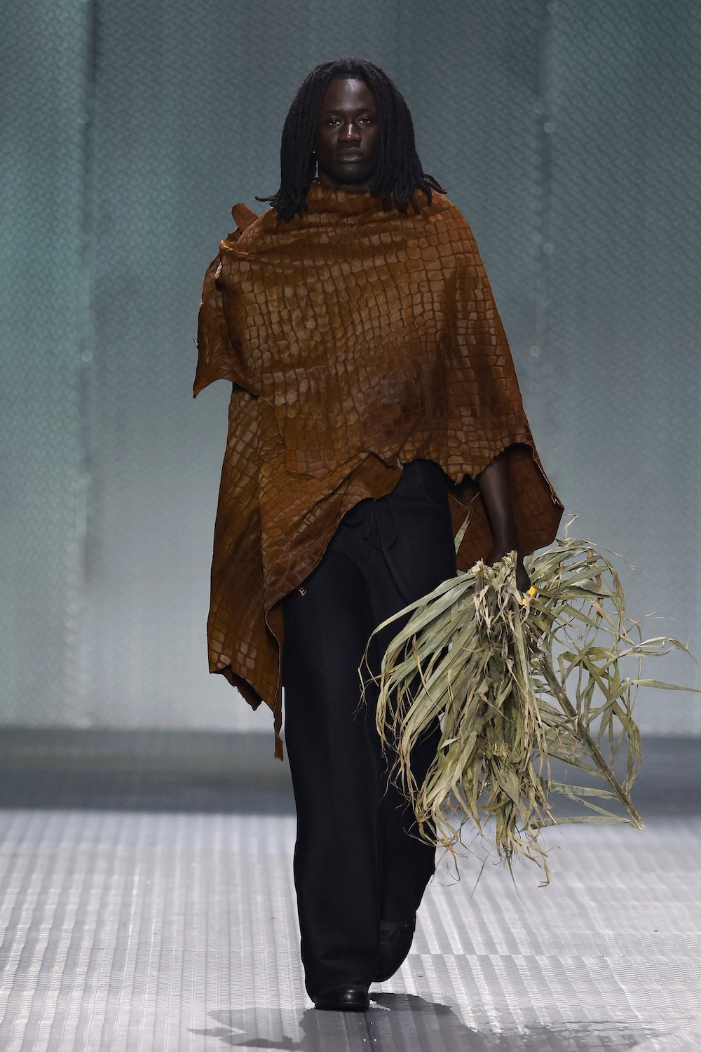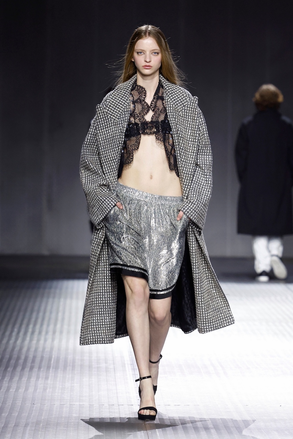 La propuesta exploraba la dualidad entre fuerza y sensibilidad: cuero, vaquero y abrigos de doble cara convivían en tonos pastel y colores más contundentes, a la vez que reivindicaban la suavidad como forma de protección. En colaboración con Vinted, la firma recontextualizaba los símbolos de consumo como crítica a la identidad performativa, reforzando así su visión inclusiva y la slow fashion.
