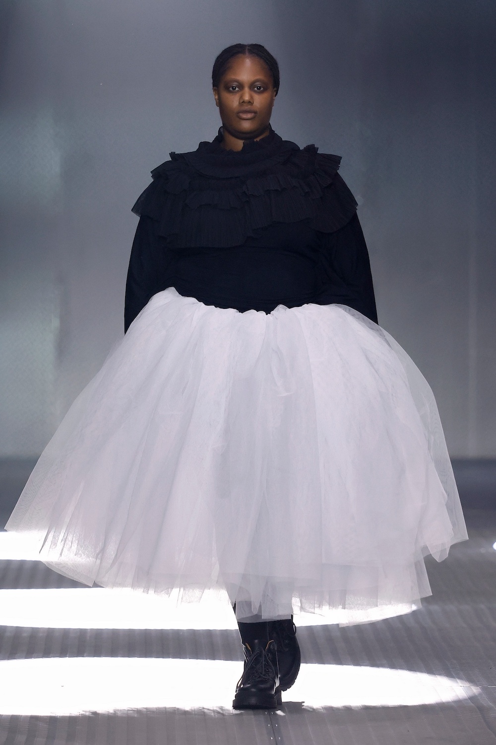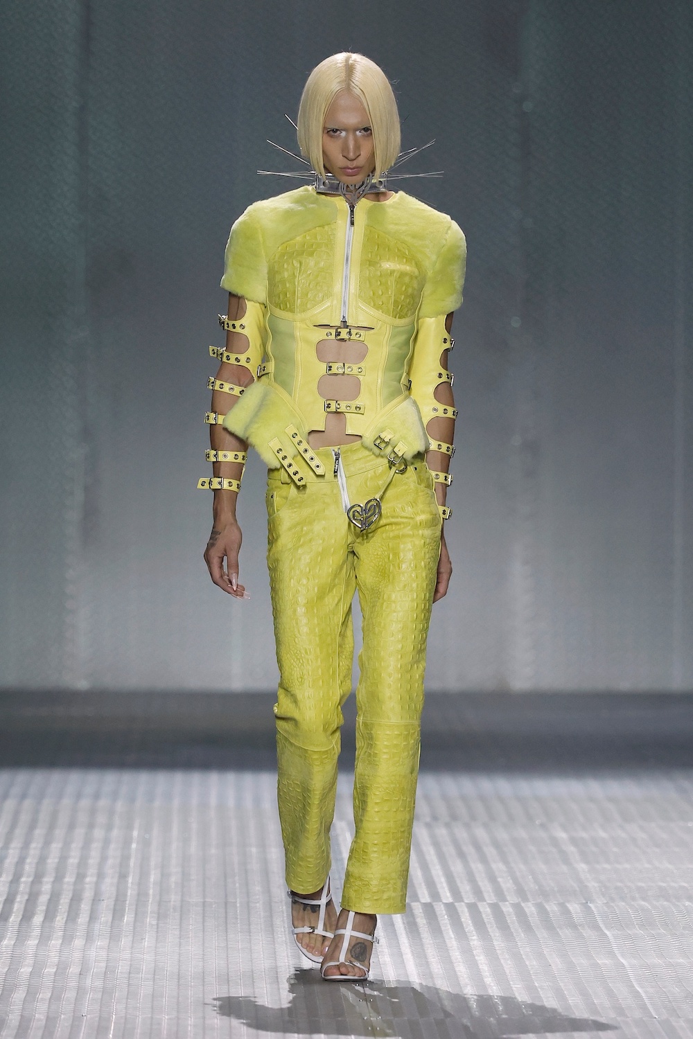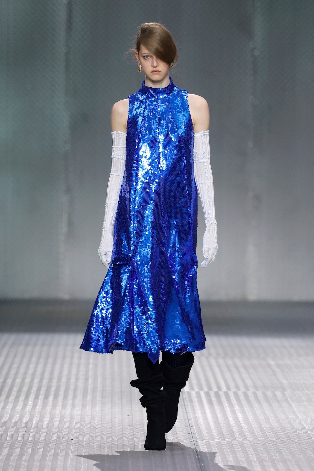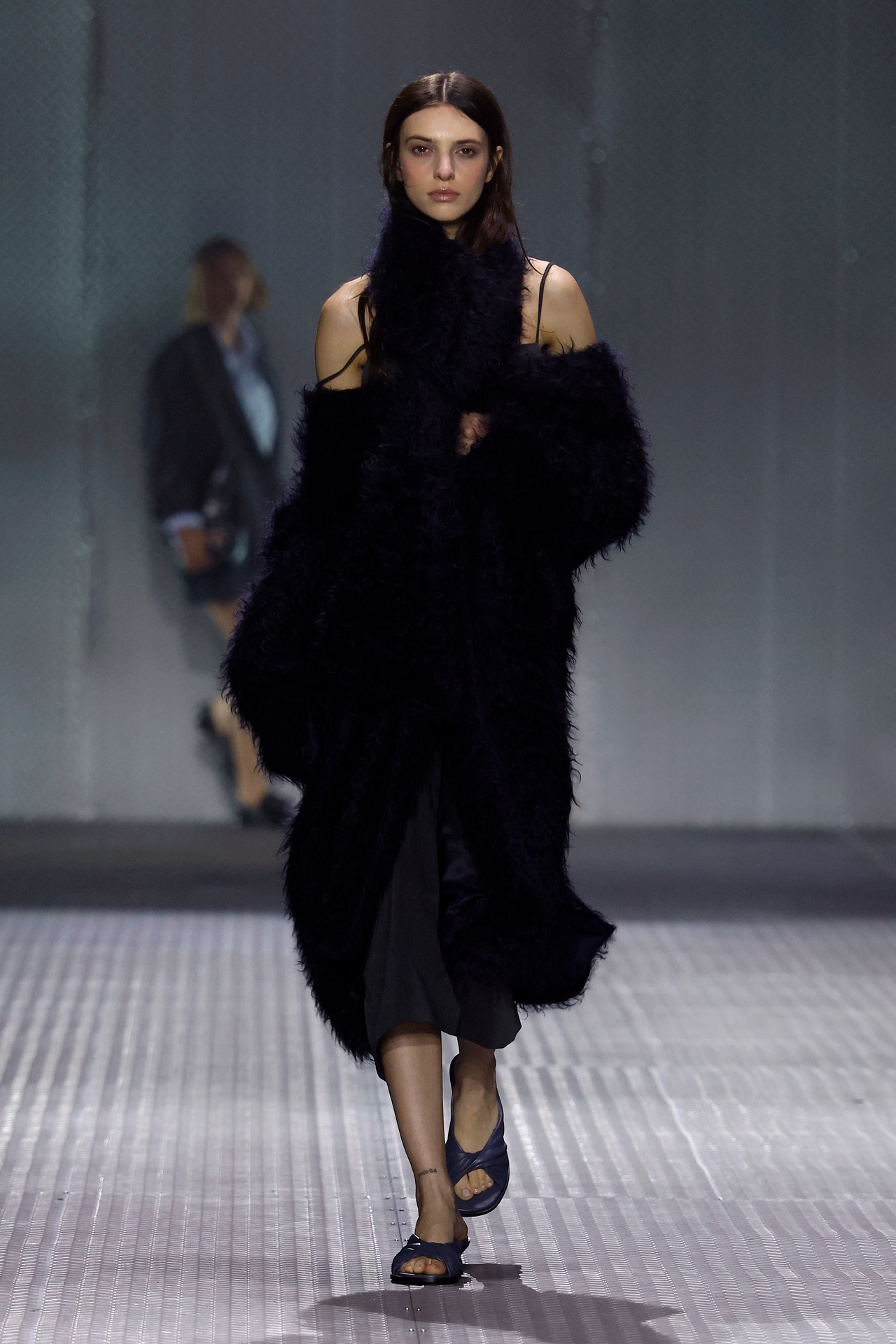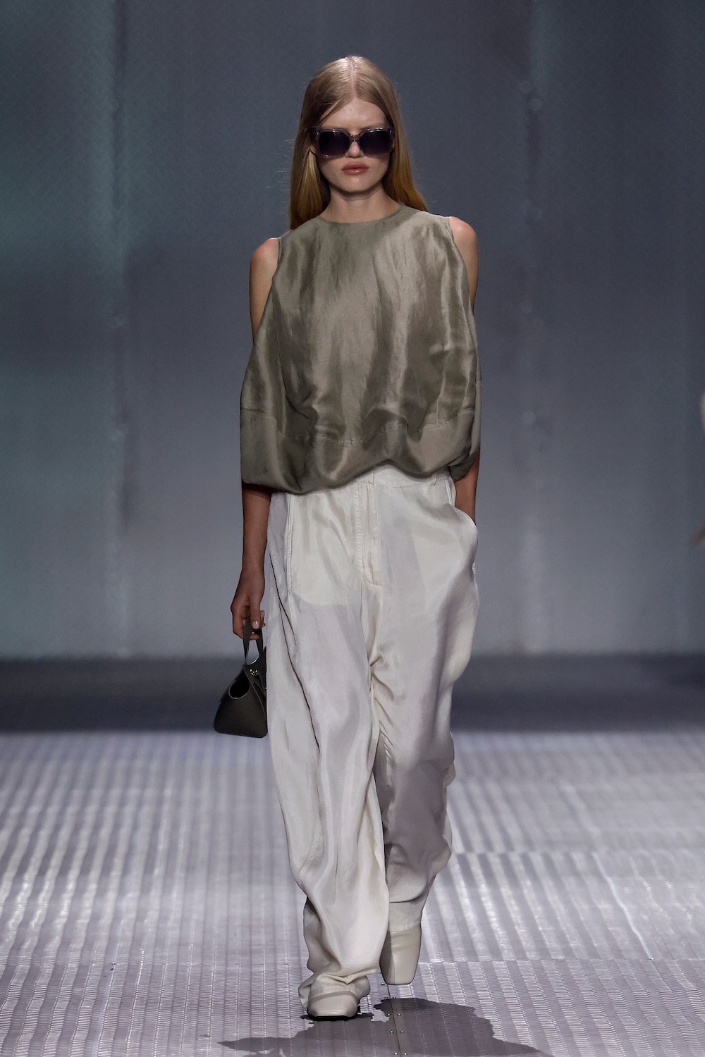 La propuesta exploraba la dualidad entre fuerza y sensibilidad: cuero, vaquero y abrigos de doble cara convivían en tonos pastel y colores más contundentes, a la vez que reivindicaban la suavidad como forma de protección. En colaboración con Vinted, la firma recontextualizaba los símbolos de consumo como crítica a la identidad performativa, reforzando así su visión inclusiva y la slow fashion.