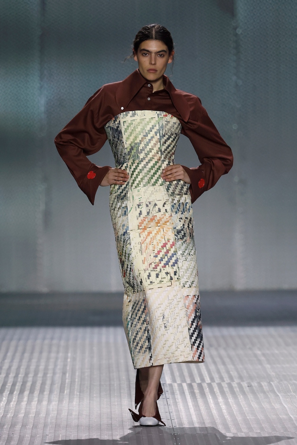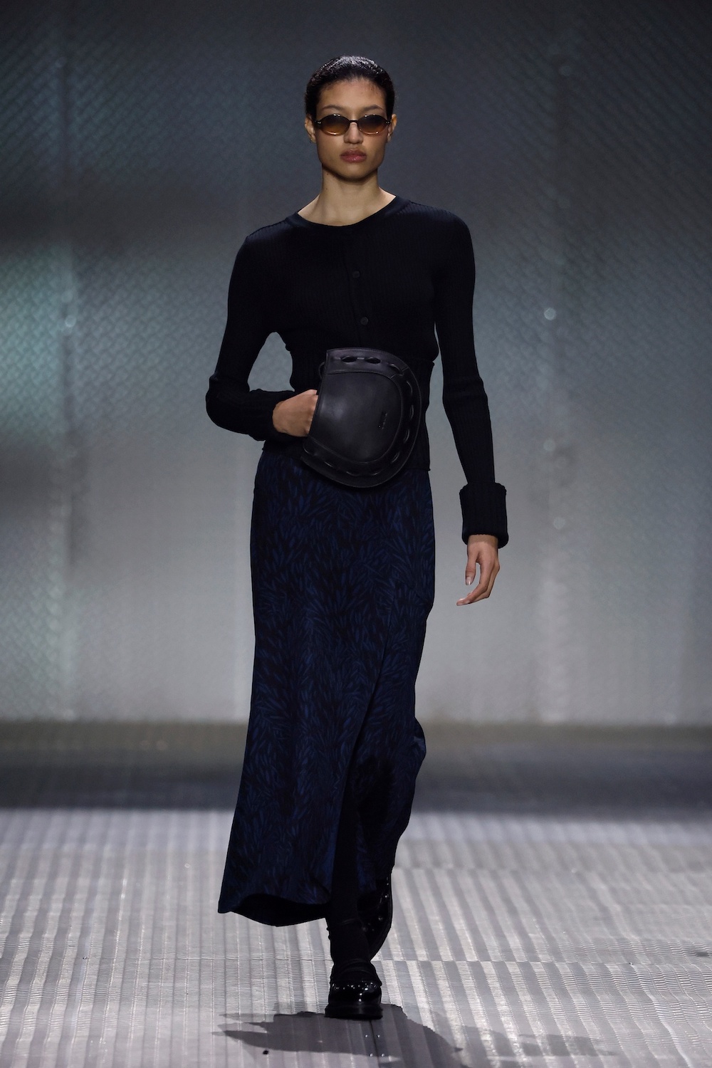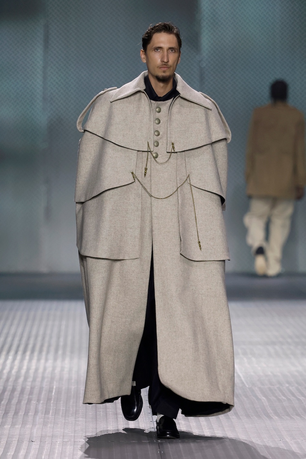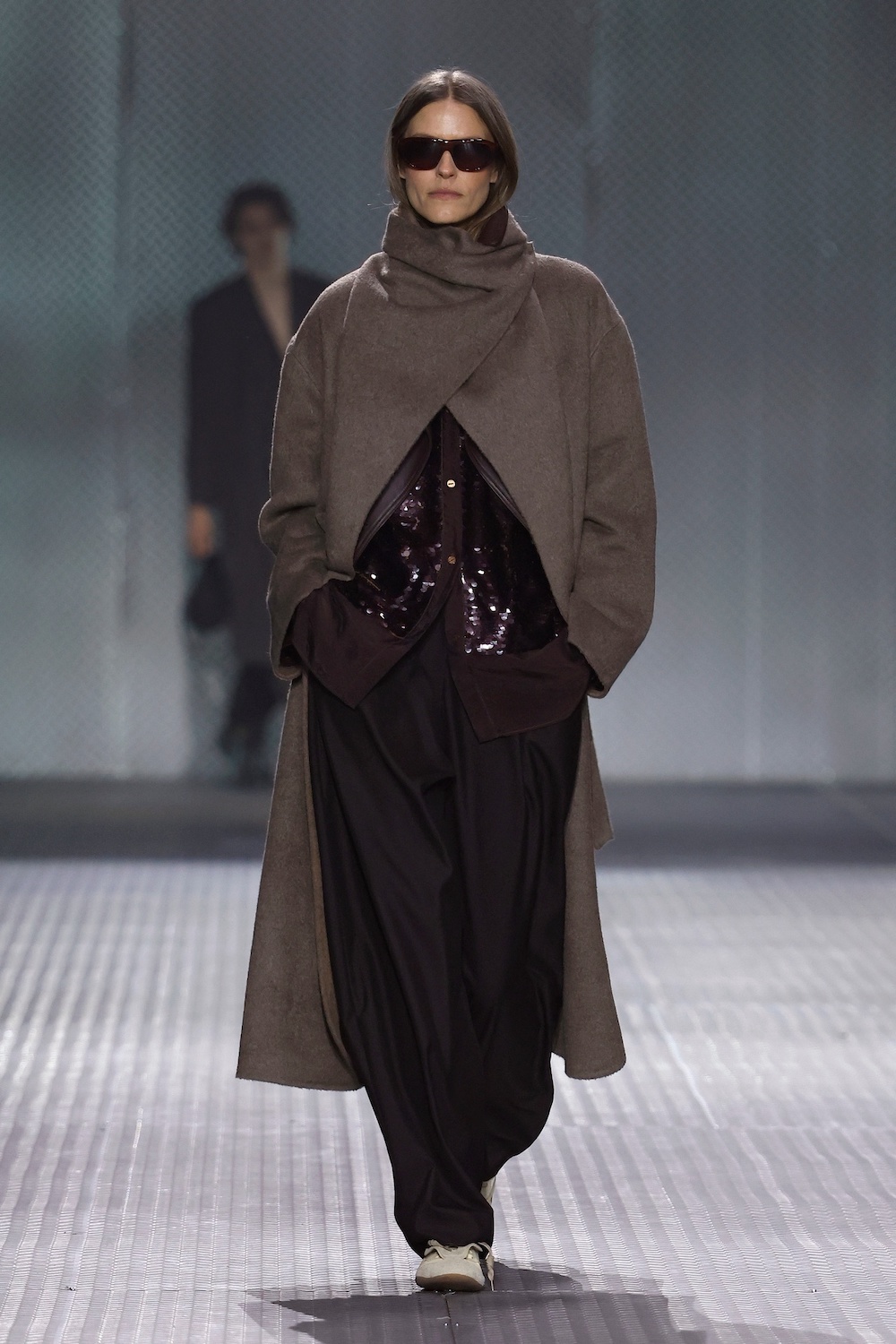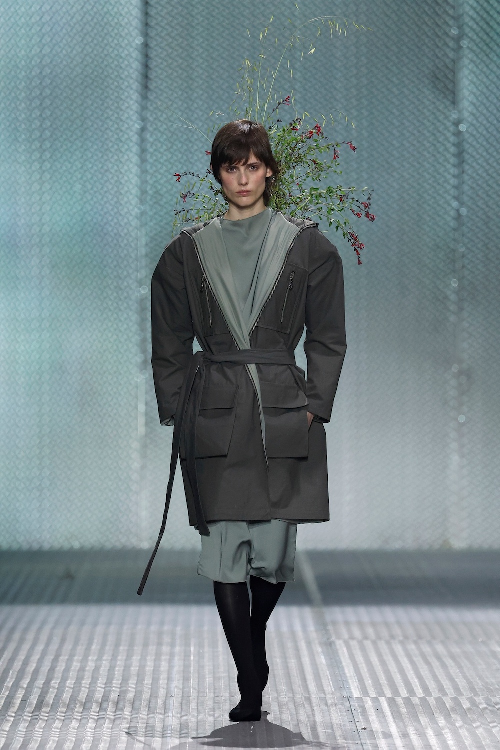 «Heritage» defendía el punto como un lenguaje en sí mismo a través de abrigos, chaquetas, jerséis de punto grueso, cárdigans y vestidos que definían la silueta. Las estructuras realizadas a mano, las texturas densas y los volúmenes equilibrados resaltaban la artesanía, con cuellos envolventes y mangas anchas que proporcionaban estructura. La paleta combinaba colores de tierra y verdes que evocaban la naturaleza, con toques de colores primarios que brindaban energía y contraste. Una colección que celebraba la comunidad y el conocimiento compartido, posicionando así el punto como una categoría estratégica.