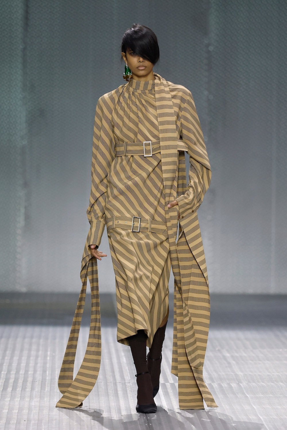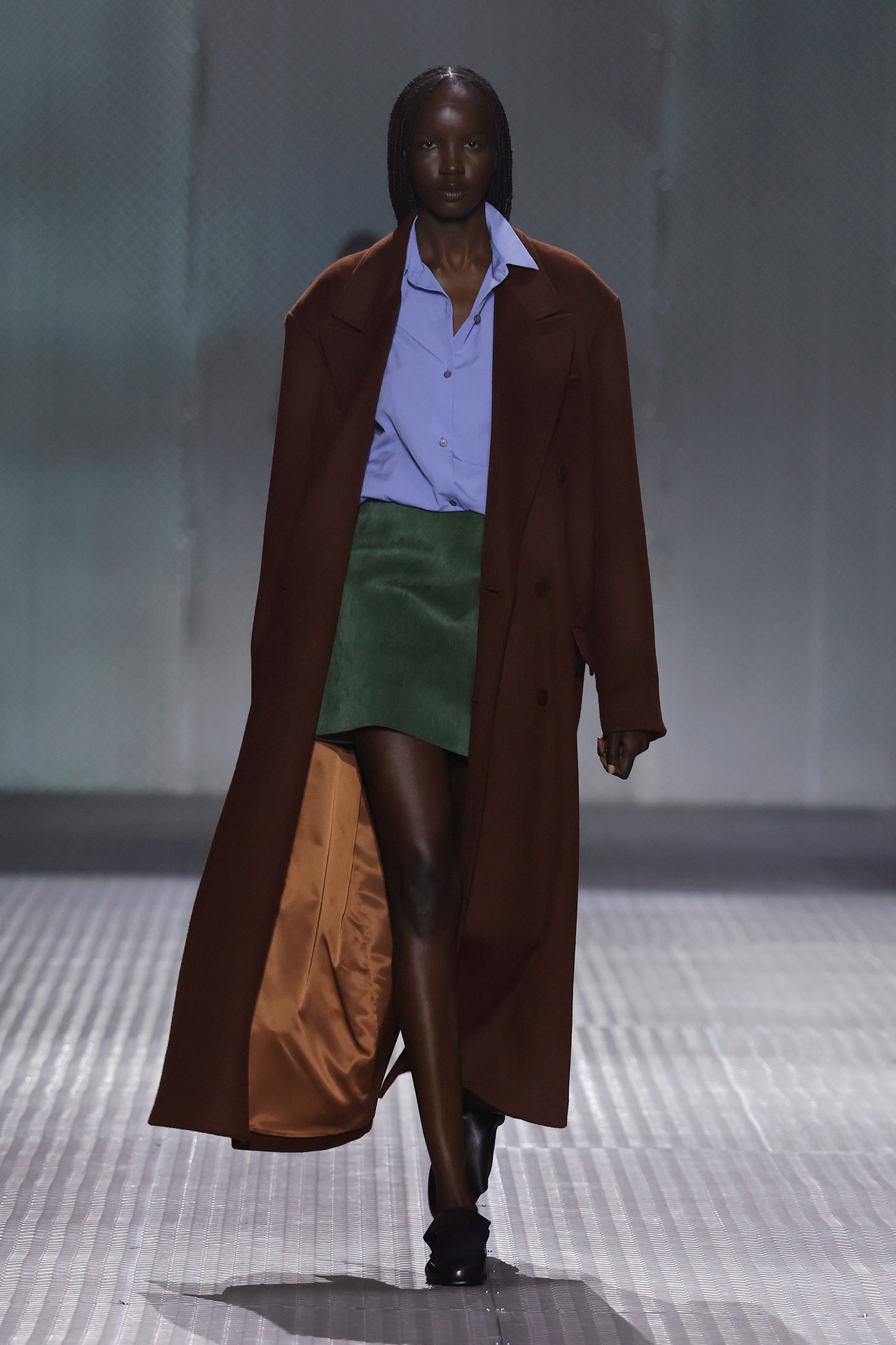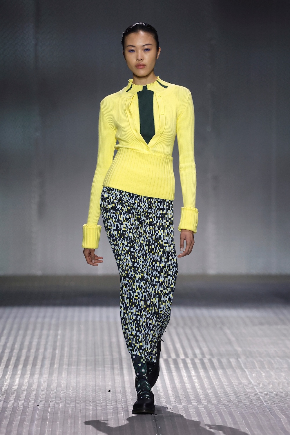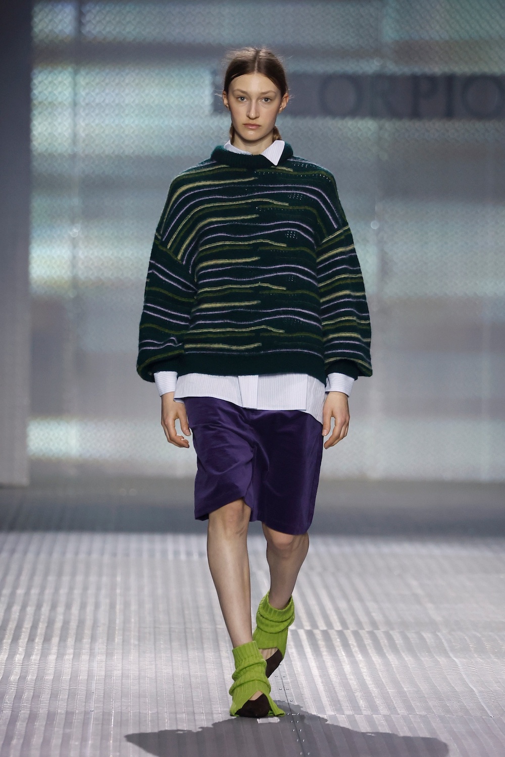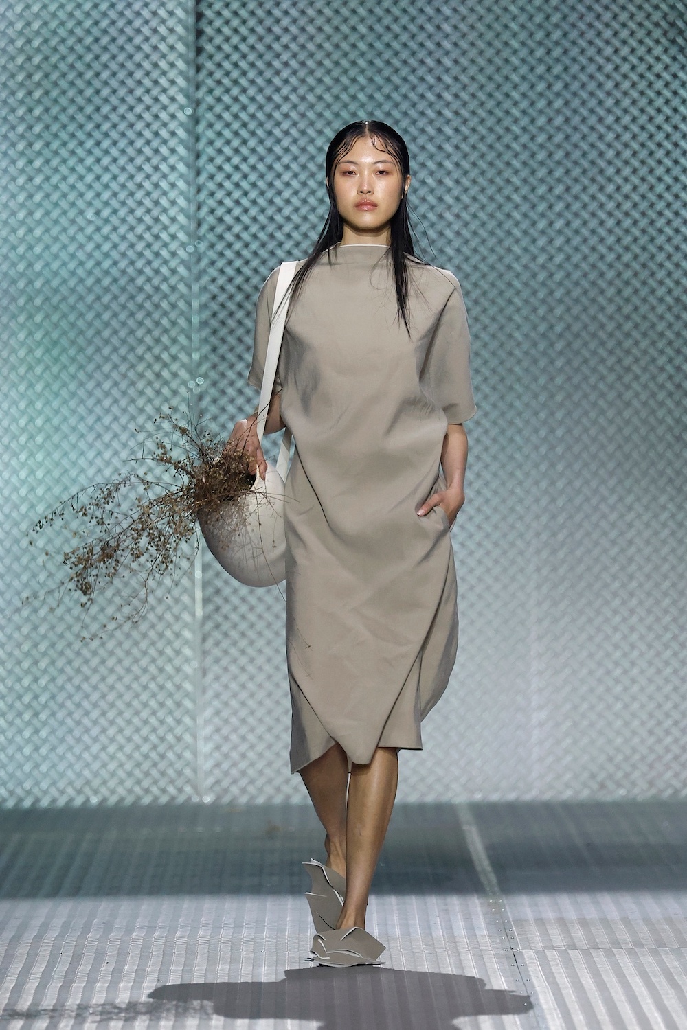 «Heritage» defendía el punto como un lenguaje en sí mismo a través de abrigos, chaquetas, jerséis de punto grueso, cárdigans y vestidos que definían la silueta. Las estructuras realizadas a mano, las texturas densas y los volúmenes equilibrados resaltaban la artesanía, con cuellos envolventes y mangas anchas que proporcionaban estructura. La paleta combinaba colores de tierra y verdes que evocaban la naturaleza, con toques de colores primarios que brindaban energía y contraste. Una colección que celebraba la comunidad y el conocimiento compartido, posicionando así el punto como una categoría estratégica.