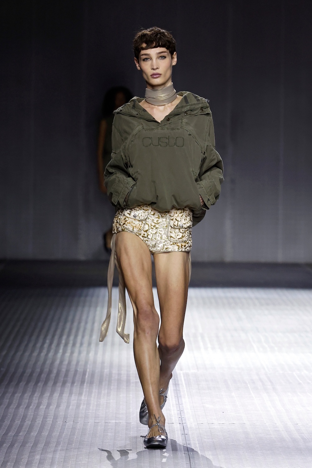 Custo Barcelona presentaba «WE OWN THE LIGHT», una colección que ensalzaba la luz como símbolo de energía e identidad. Fieles a la impronta de la casa, sus estilos exploraban la sensualidad arquitectónica, los contrastes cromáticos y las texturas experimentales, fusionando así vanguardia y artesanía.