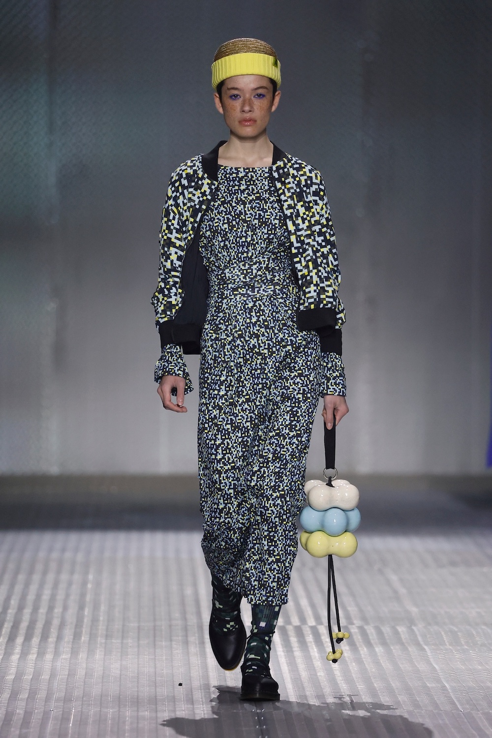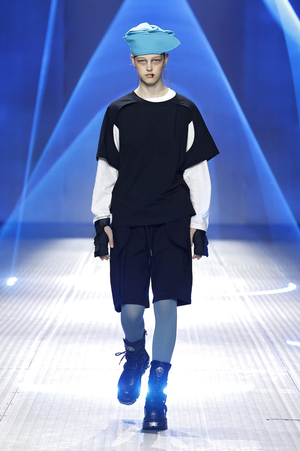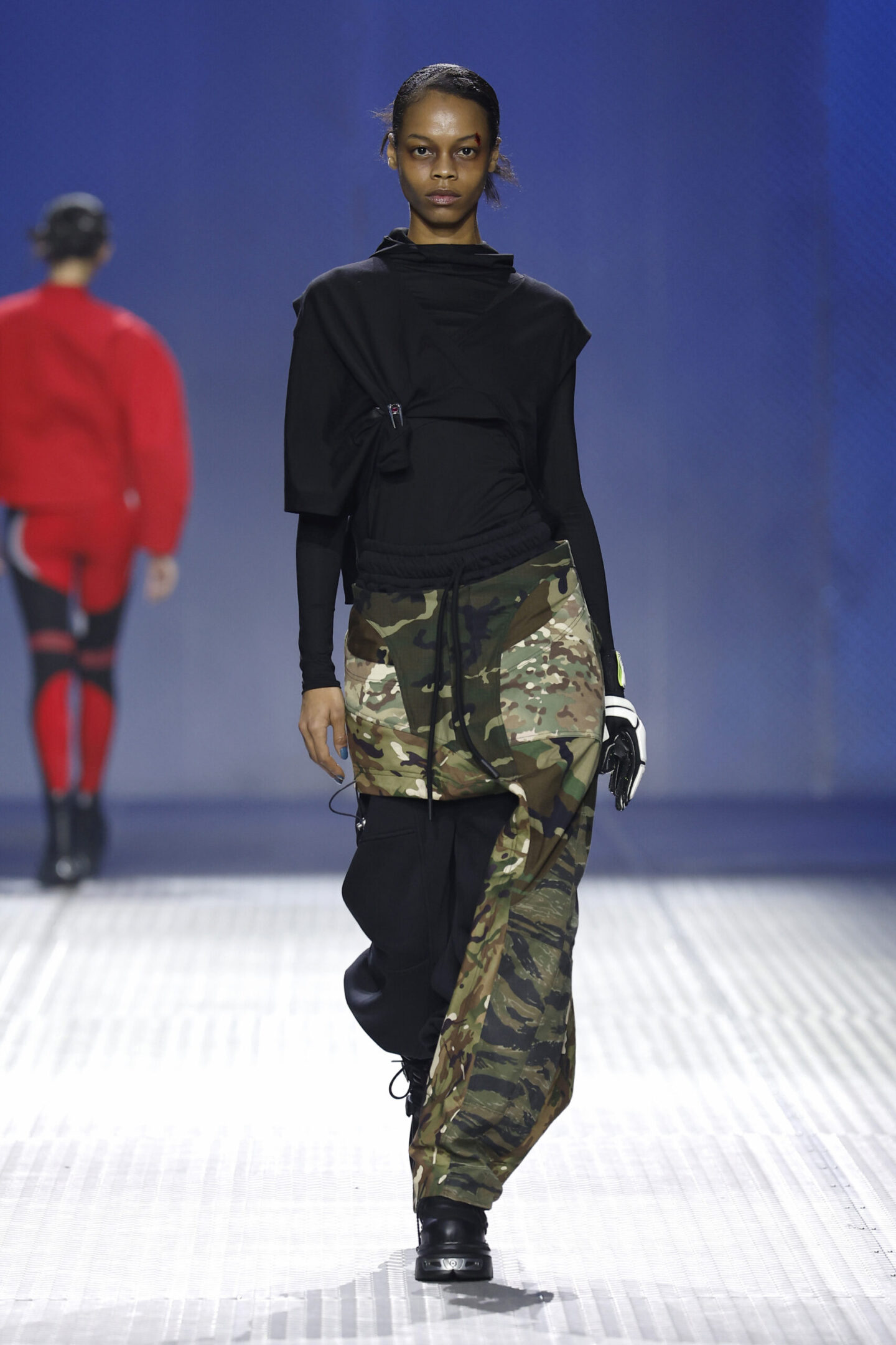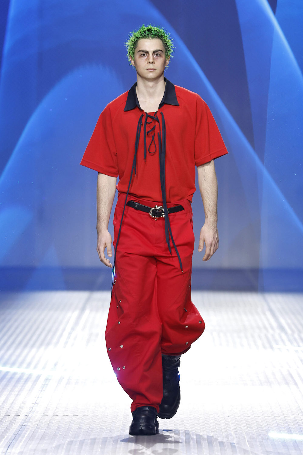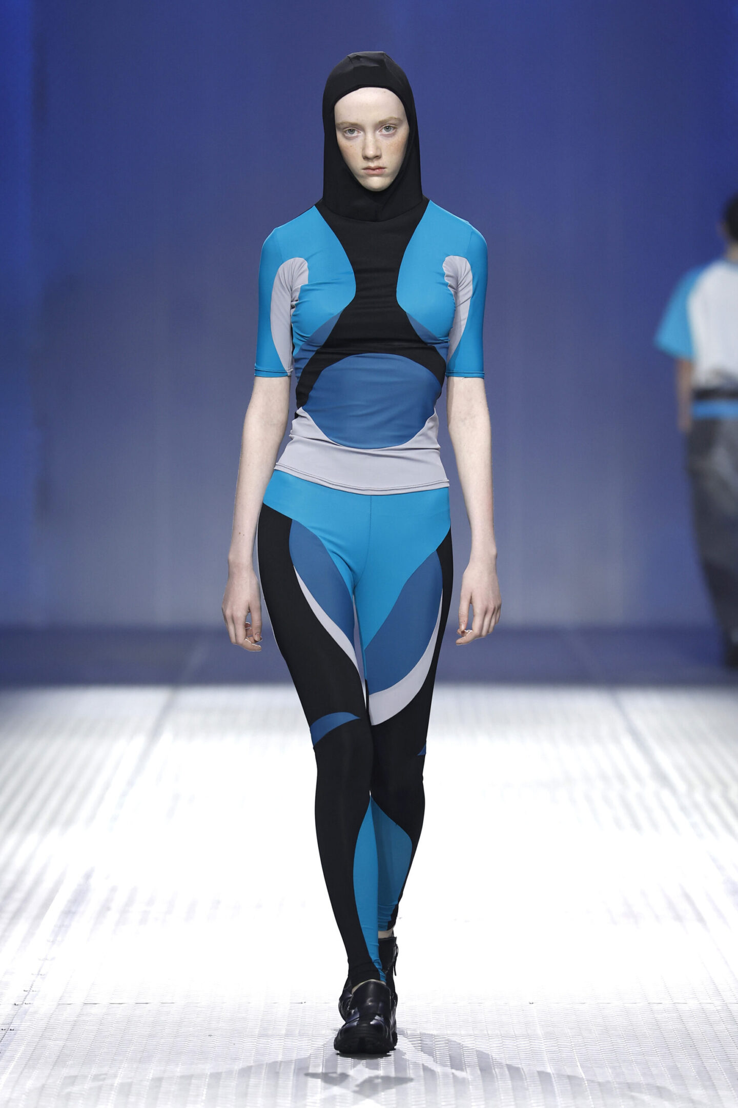 Siluetas envolventes, recortes inspirados en paisajes vectoriales y estructuras que recordaban uniformes de pilotos se combinaban con accesorios metálicos y una paleta vibrante que evocaba gráficos de 16 bits. El discurso abarcaba prácticas de upcycling y materiales reciclados, poniendo así la ergonomía y la funcionalidad al servicio de una estética genderless de streetwear 2.0