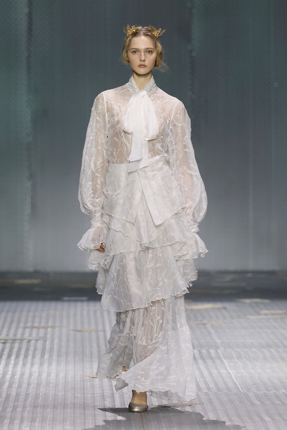 «Plan B» florecía como un jardín en el crepúsculo, donde convivían las piezas icónicas del Atelier Bolaño. El romanticismo del siglo XIX y el eco de la alta costura de los años 50 y 60 dialogaban con la ternura ingenua, kitsch y melancólica.