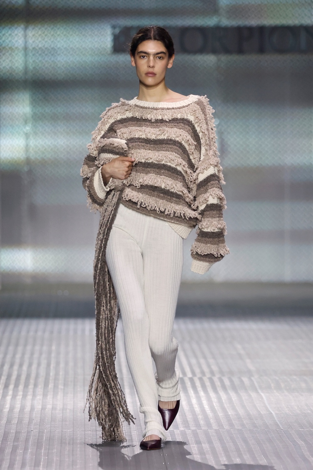 ESCORPION inauguraba la pasarela de la 37.ª edición con una colección que reafirmaba su estatus como referente internacional en prendas de punto. Fundada en 1929 y presente en más de 20 países, la marca presentaba su colección bajo la dirección creativa de Jessica Raya.