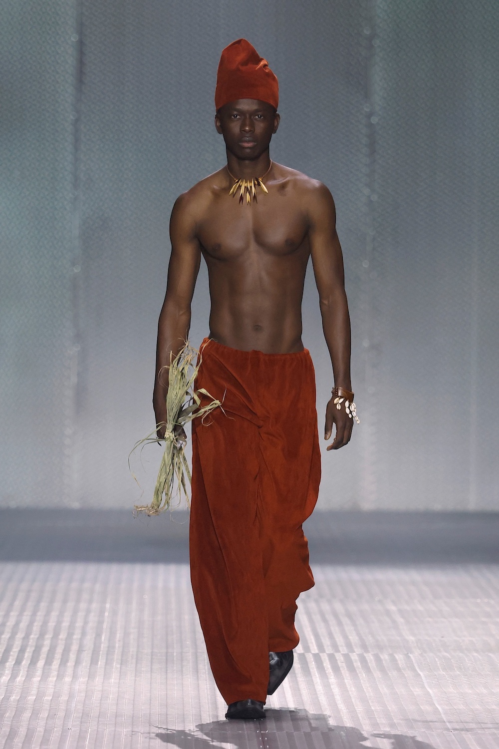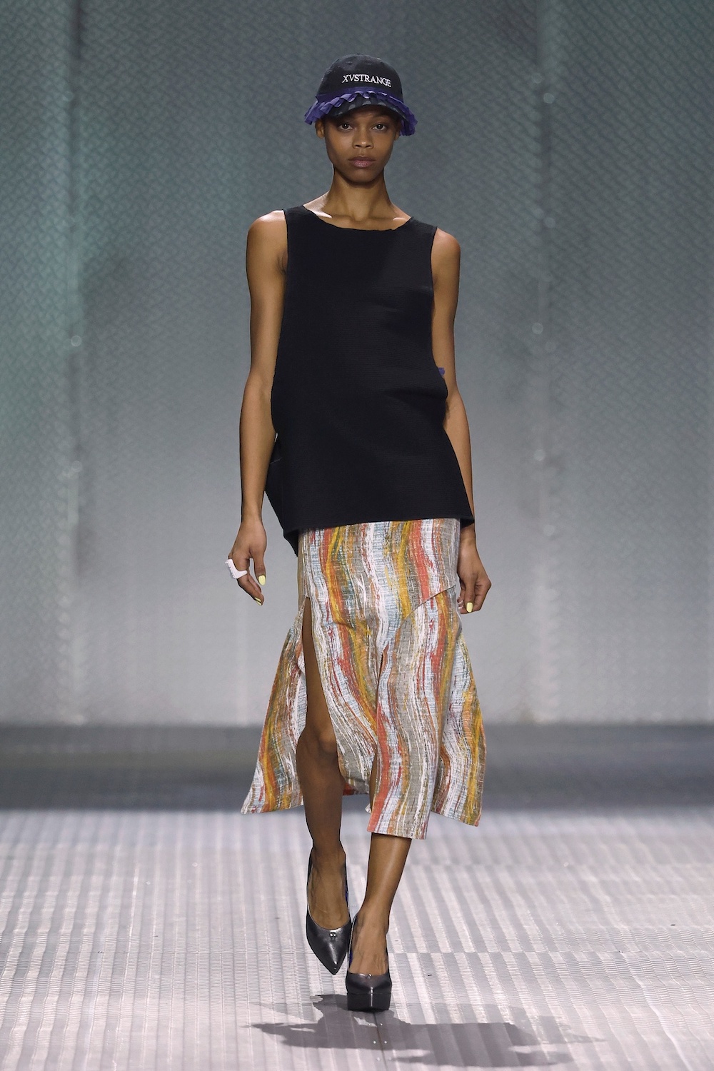 XV STRANGE, una firma fundada en 2018 en Madrid por Devins Kulmancha y Jack Lucid, sus diseñadores de origen guineano, que entendían el arte como raíz de su creación, presentaba «WOSONGLE», una colección unisex que articulaba la moda como lenguaje vivo que dialogaba con las raíces culturales y ancestrales.