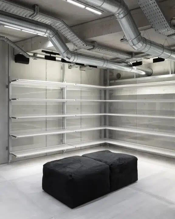 En un espacio totalmente vacío, Balenciaga invita a los visitantes a sumergirse en un entorno industrial. Al igual que en el nuevo buque insignia de Balenciaga en Bond Street, Londres, la de Saint Tropez tiene un diseño deliberadamente inacabado.
