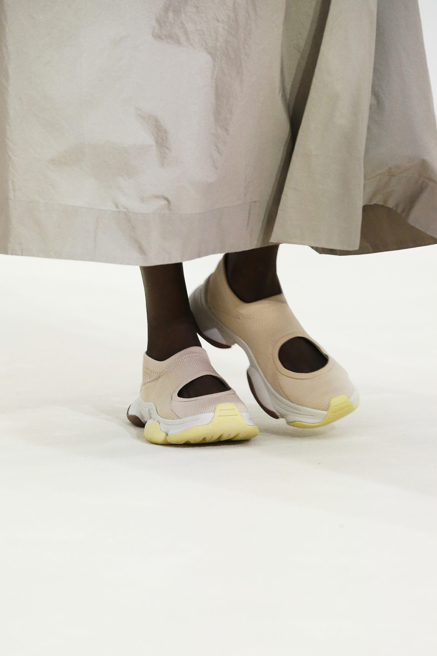 CAMPER × ISSEY MIYAKE presenta Karst Finch, el primer par de zapatillas de esta colaboración, basado en uno de los modelos más distintivos de Camper: Karst. El diseño juega con la idea de montar una parte superior ligera y elástica sobre la característica suela, inspirada en las formaciones geográficas rocosas que dan nombre al zapato.