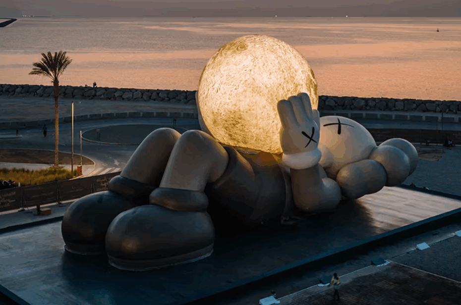 KAWS debuta en Abu Dhabi con una instalación luminosa que redefine la escala y el paisaje nocturno del desierto.