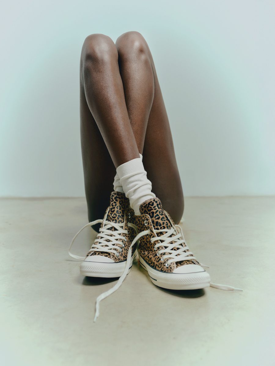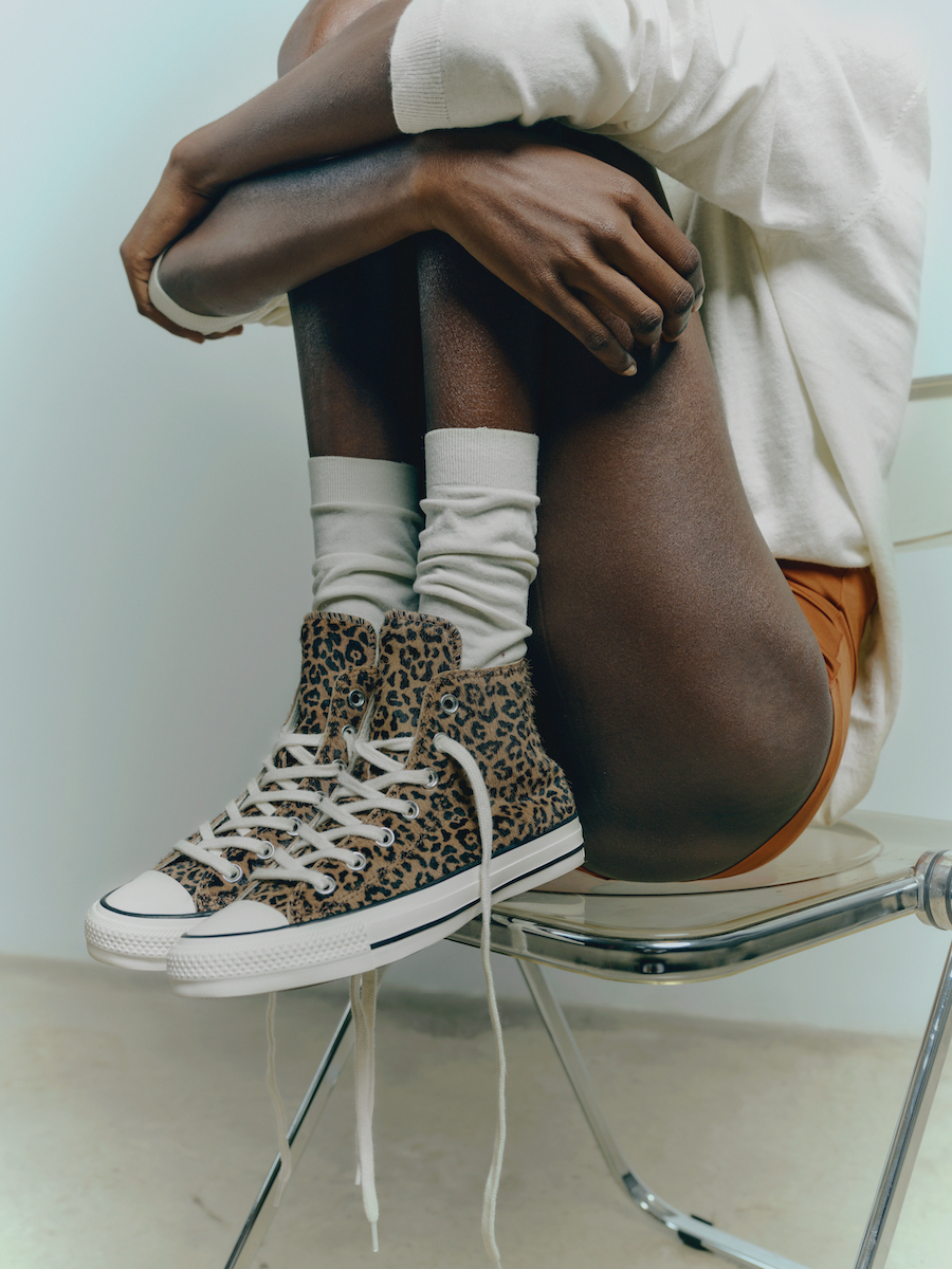 La colección revisita los iconos de Converse, desde las Chuck Taylor All Star hasta sus versiones más experimentales, a través de materiales que evocan piel, pelaje y rugosidad. Los motivos de leopardo se convierten en emblemas de confianza; las cebras trazan un diálogo entre lo clásico y lo disruptivo; las texturas de serpiente capturan la luz con un movimiento casi orgánico, como si cada superficie respirara. Todo se articula en un lenguaje visual que transita entre archivo y evolución, entre lo orgánico y lo sintético, entre herencia y reinvención.