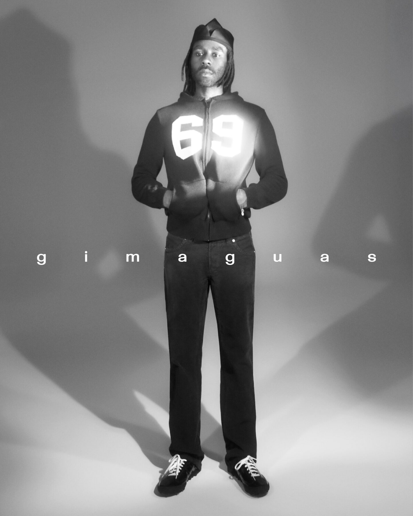 De esta forma surge un espacio ambiguo donde la estética del protagonista se encuentra con las nuevas prendas de Gimaguas Chico, que parecen pensadas para su propio armario personal: sudaderas de punto que abrazan el cuerpo, chaquetas con detalles reflectantes que introducen un guiño técnico, y camisas a cuadros que reformulan clásicos desde una actitud relajada.