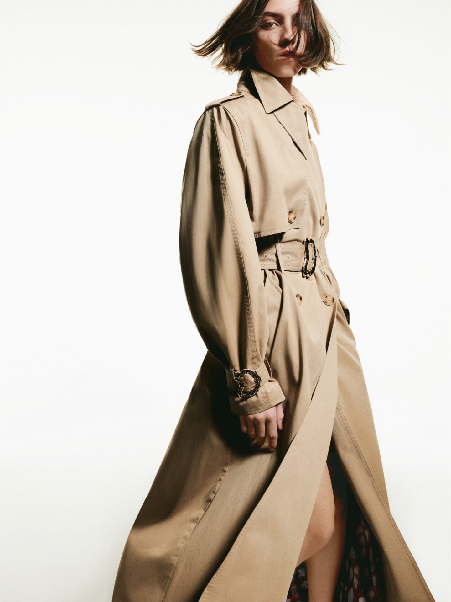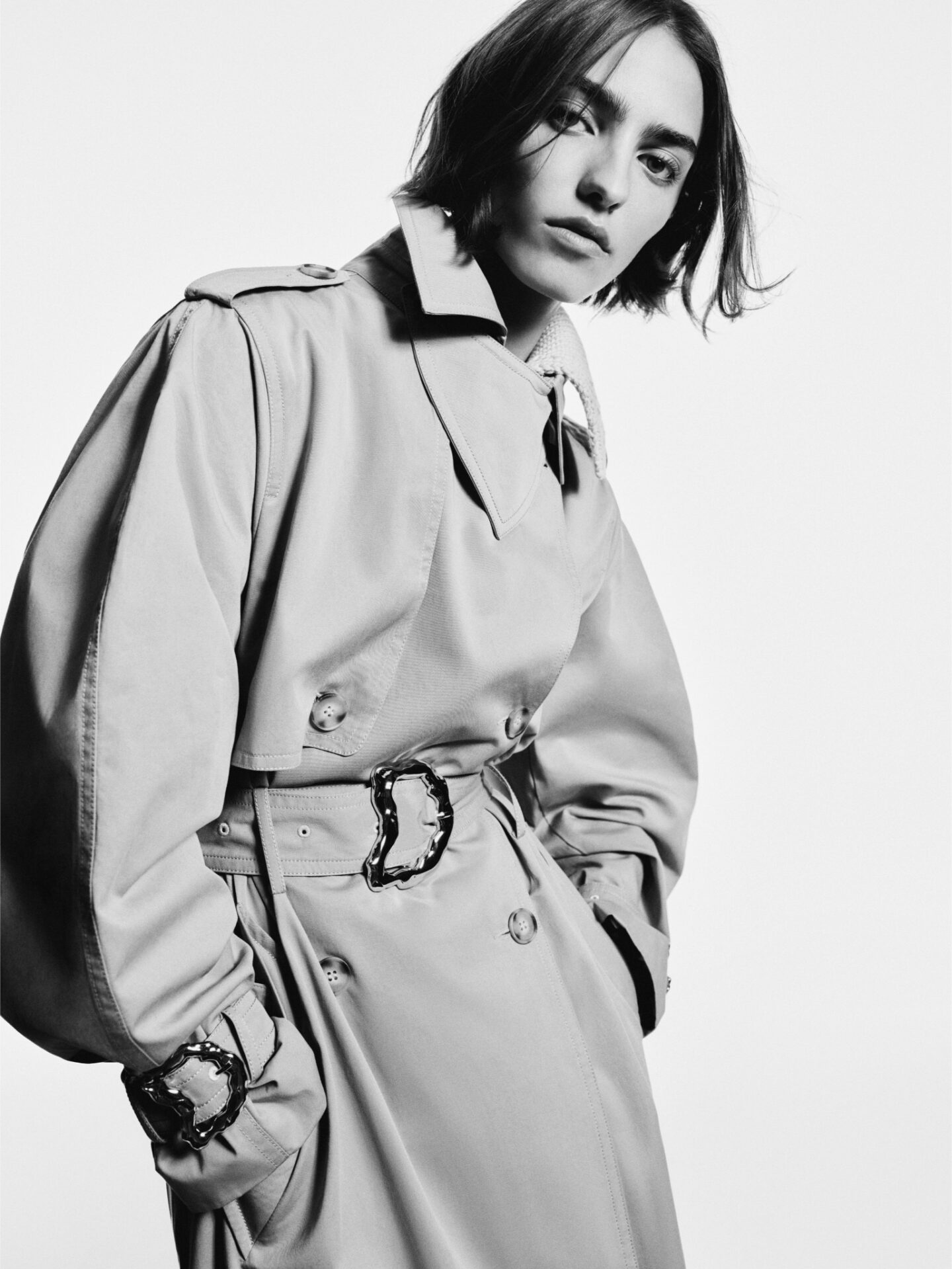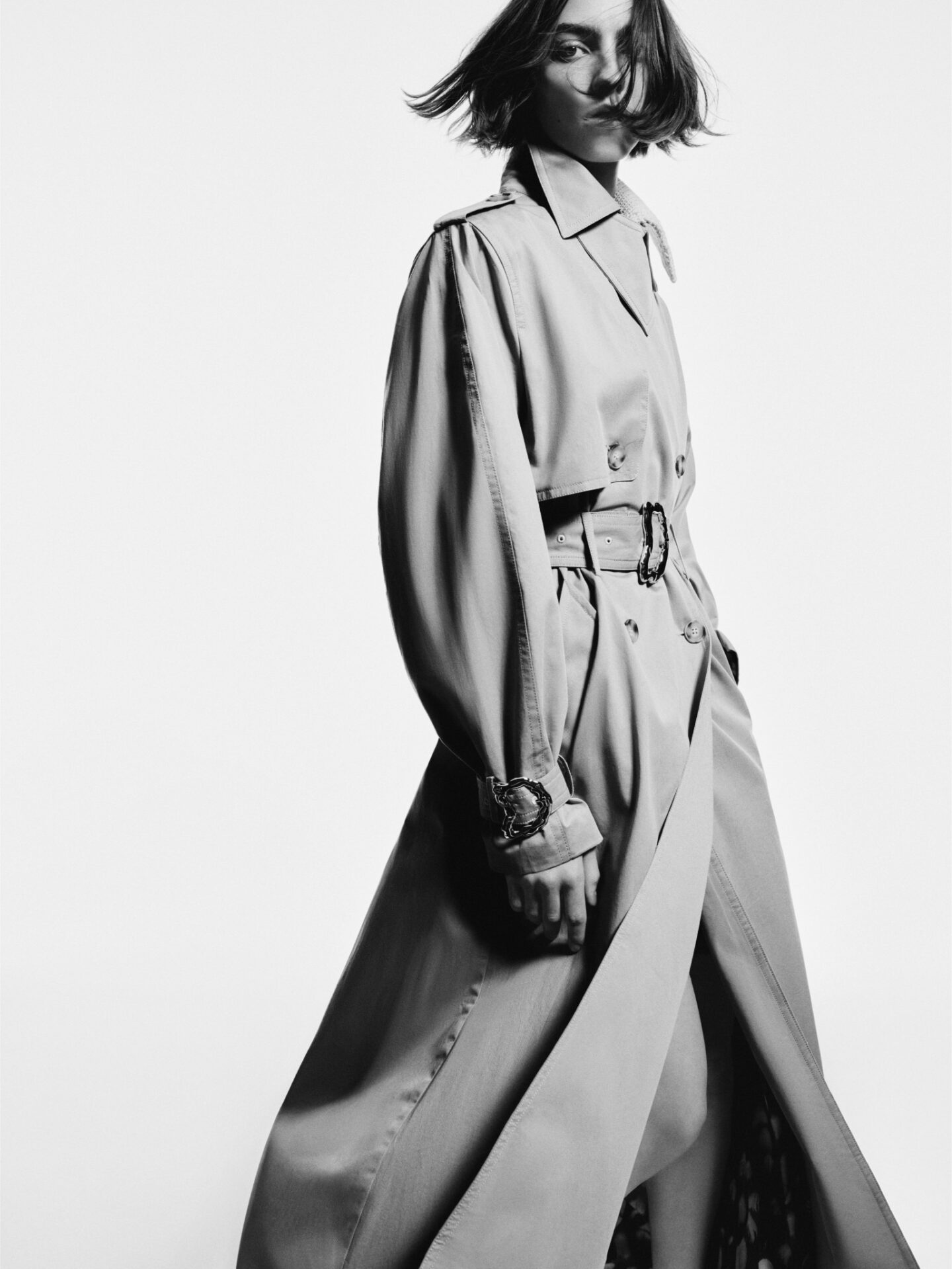 Las piezas clave de la colección son el trench, con detalles arquitectónicos de la “D”; el abrigo de lana estructurado, con cinturón metálico en forma de D que marca la cintura y el carácter; y el denim artesanal con desgastes manuales y matices que hacen cada pieza única.