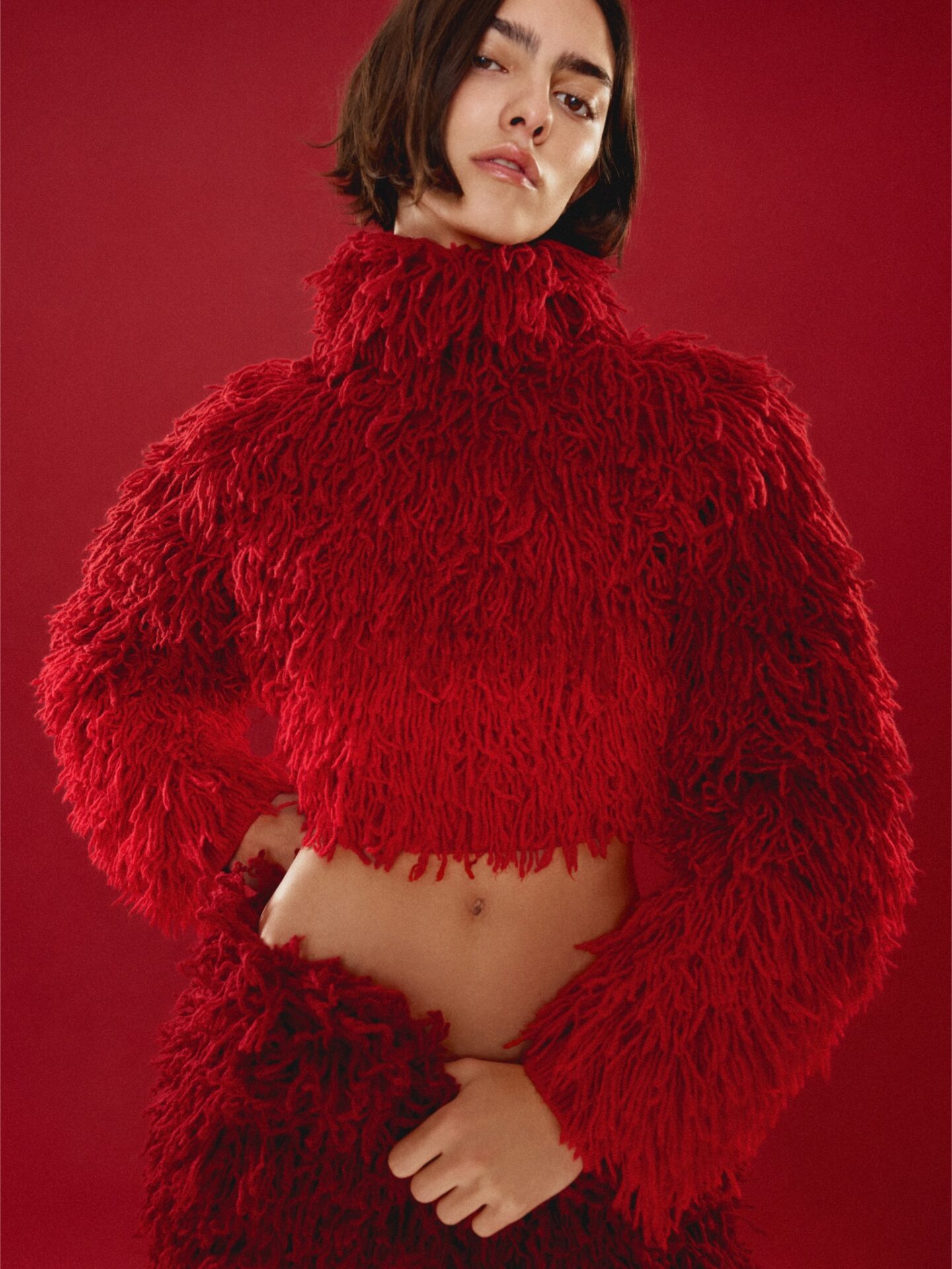 EGONLAB no disfraza la marca. Materiales premium —como cuero certificado y punto con cashmere— construyen piezas con caída, tacto y durabilidad. La colección se siente más adulta, con diseño cuidado y acabados que no pretenden llamar la atención, sino estar a la altura de una exigencia cualitativa de las marcas al frente de la colección, que, aromáticamente, se mueve entre extremos: negros y grises frente a rojos y rosas, y un estampado exclusivo de plumas que aporta ligereza sin caer en lo literal.
