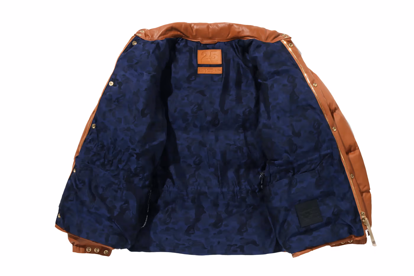To mark this celebration, BAPE® introduces the 25th Edition, a version that respects the original design and has been produced in Japan. The garment uses selected sheepskin leather and Kawada Down filling, known for its lightness and great ability to retain heat. Only 50 units exist worldwide, making it a collector’s item.