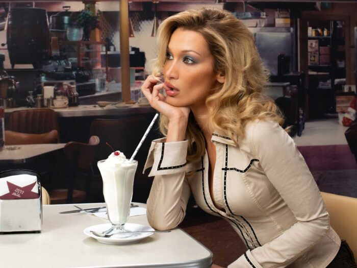 And if that weren’t enough, Bella also co-directed the campaign creatively, reimagining a 1990s shopping centre with a surrealist touch and references to Mean Girls and Jennifer’s Body. All captured through the lens of photographer Yasmine Diba.