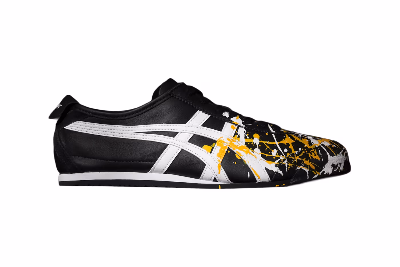 The project also introduces a special take on the Mexico 66, one of Onitsuka Tiger’s most emblematic silhouettes. For this edition, four unique accessories have been created, wide original laces, hand-splattered paint, a yellow mask and a 3D-modelled part. Each element adds a new layer to the silhouette and reinforces its experimental direction.