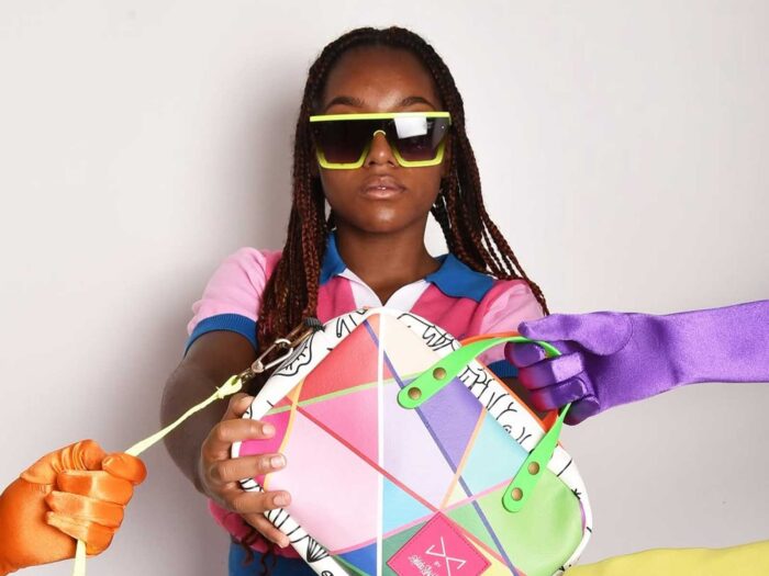 Okuda, known for expanding colour to infinity, presented for the first time an almost secret facet: line drawings that dialogue with his already iconic multicoloured geometry. From this union, a new, more intimate but equally powerful imaginary world was born, which found in Chong the perfect ally to give it shape. The designer—true to his vibrant language and vision of conscious fashion—elevated his timeless accessories to pieces that function as ready-to-wear sculptures.