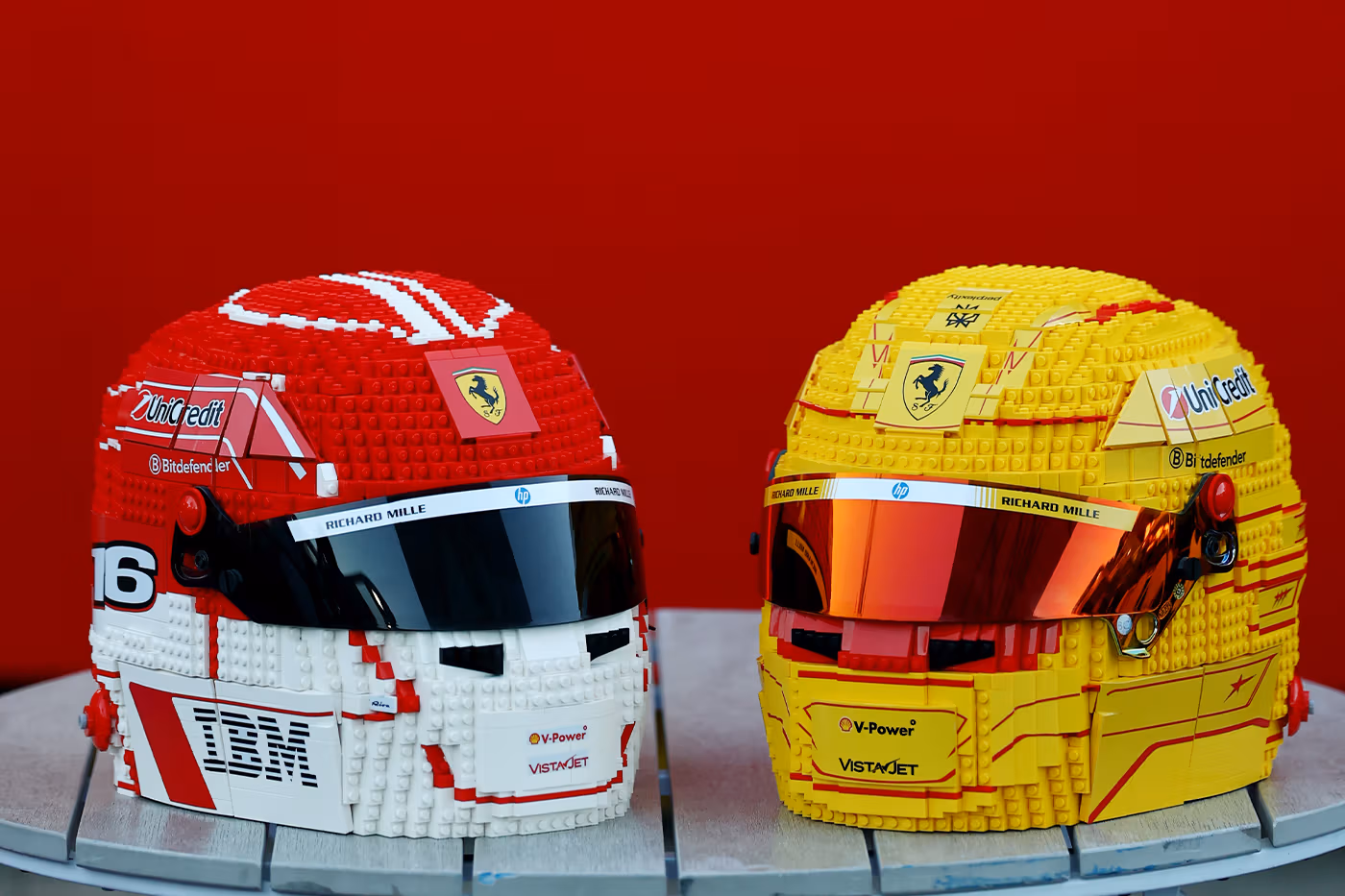 To celebrate the launch, both drivers were spotted walking through the team area carrying giant versions of their own helmets built entirely from LEGO bricks. The sculptures, around 25 centimetres tall, were designed by LEGO Certified Professional Ryan “The Brickman” McNaught and his team. Each one required around 60 hours of work, weighs close to 3 kg and is made up of more than 3,500 pieces.
