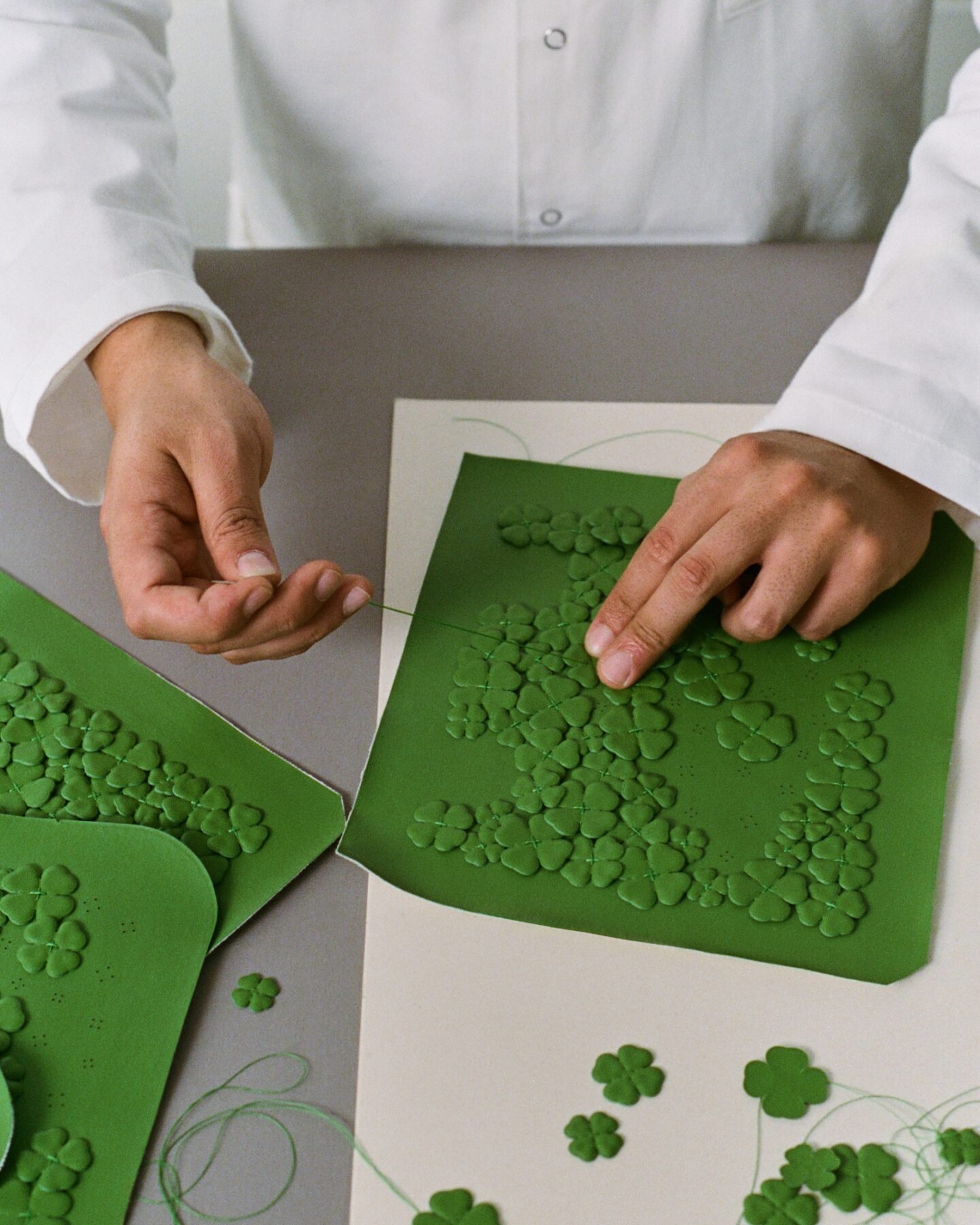Behind this playful aesthetic lies, as always, impeccable craftsmanship, as each clover has been individually hot-stamped and hand-embroidered. A process that highlights the excellence of Dior‘s ateliers.