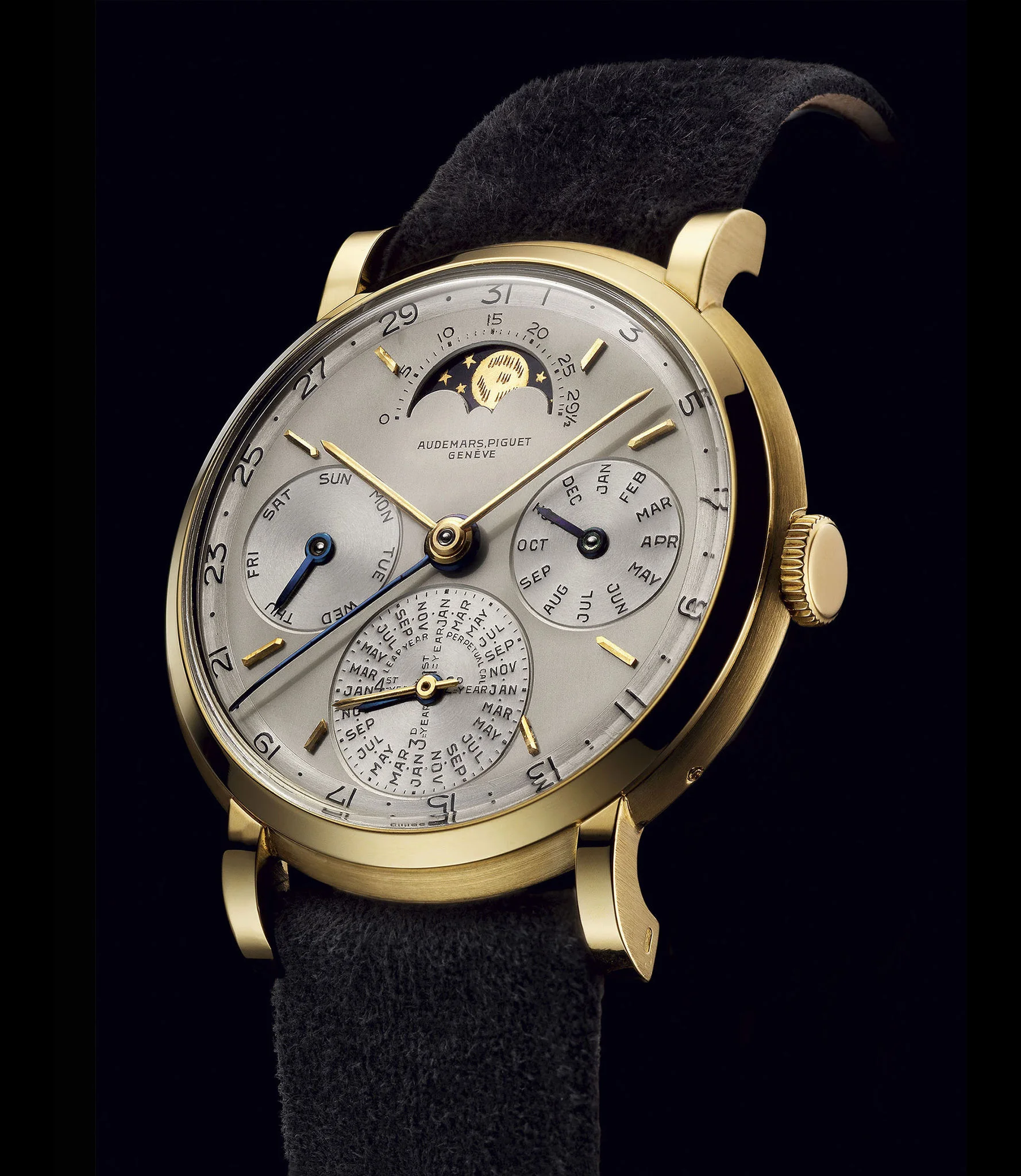 In 1930, the brand presented its first wristwatch with a chronograph. This one, in steel and rose gold, dates from 1947 and, in addition to the chronograph, includes a full calendar. It is the 5503 model housed in the Pygmalion Gallery in Singapore, one of the most extensive collections of vintage Audemars Piguet watches in the world.