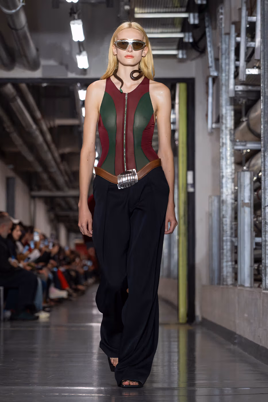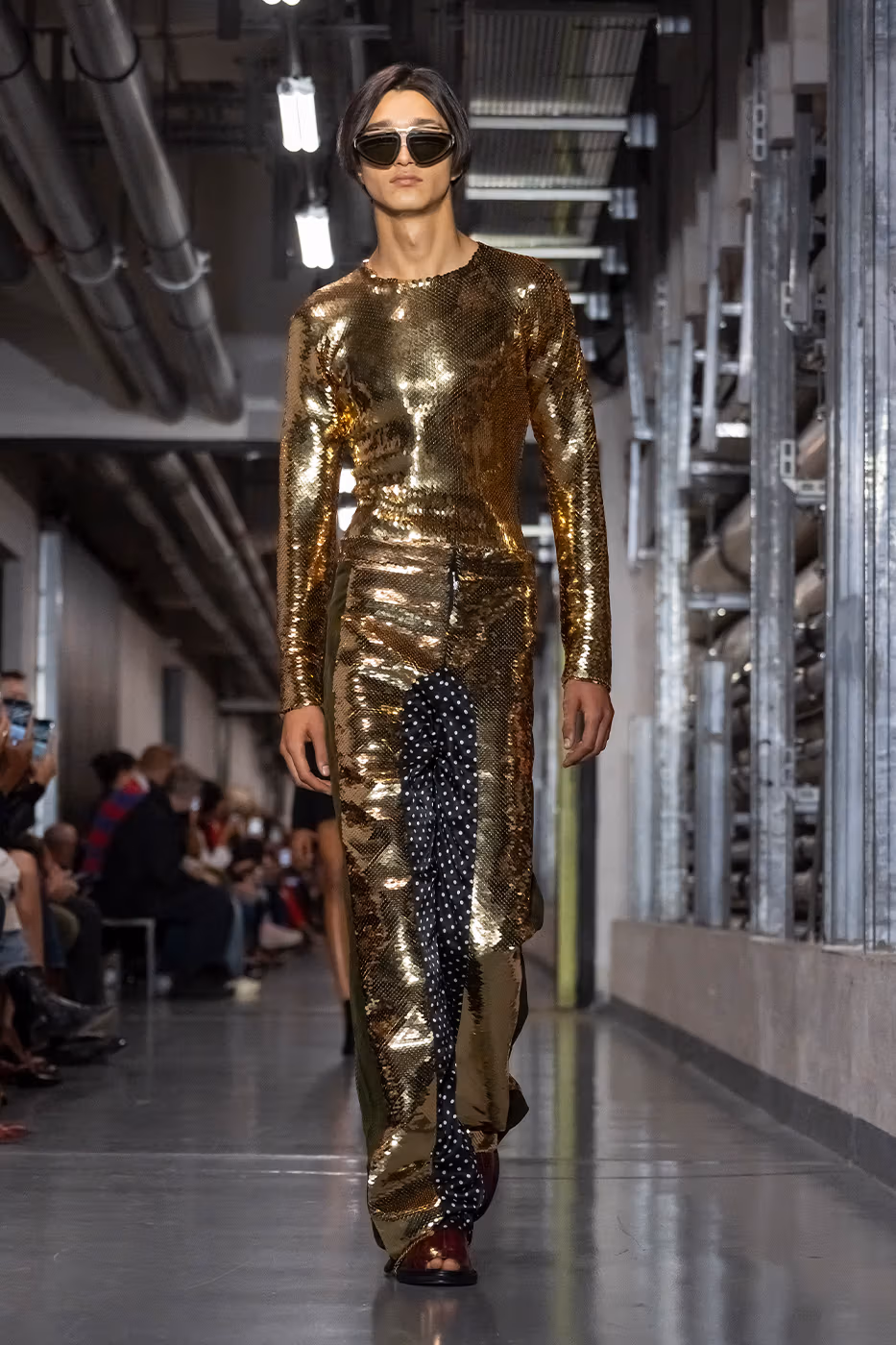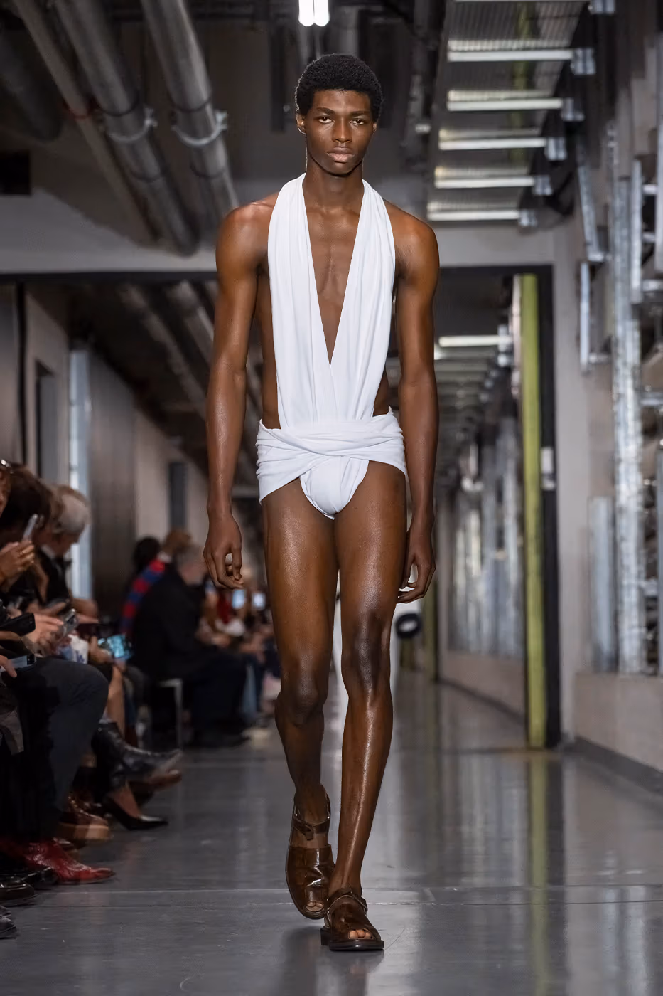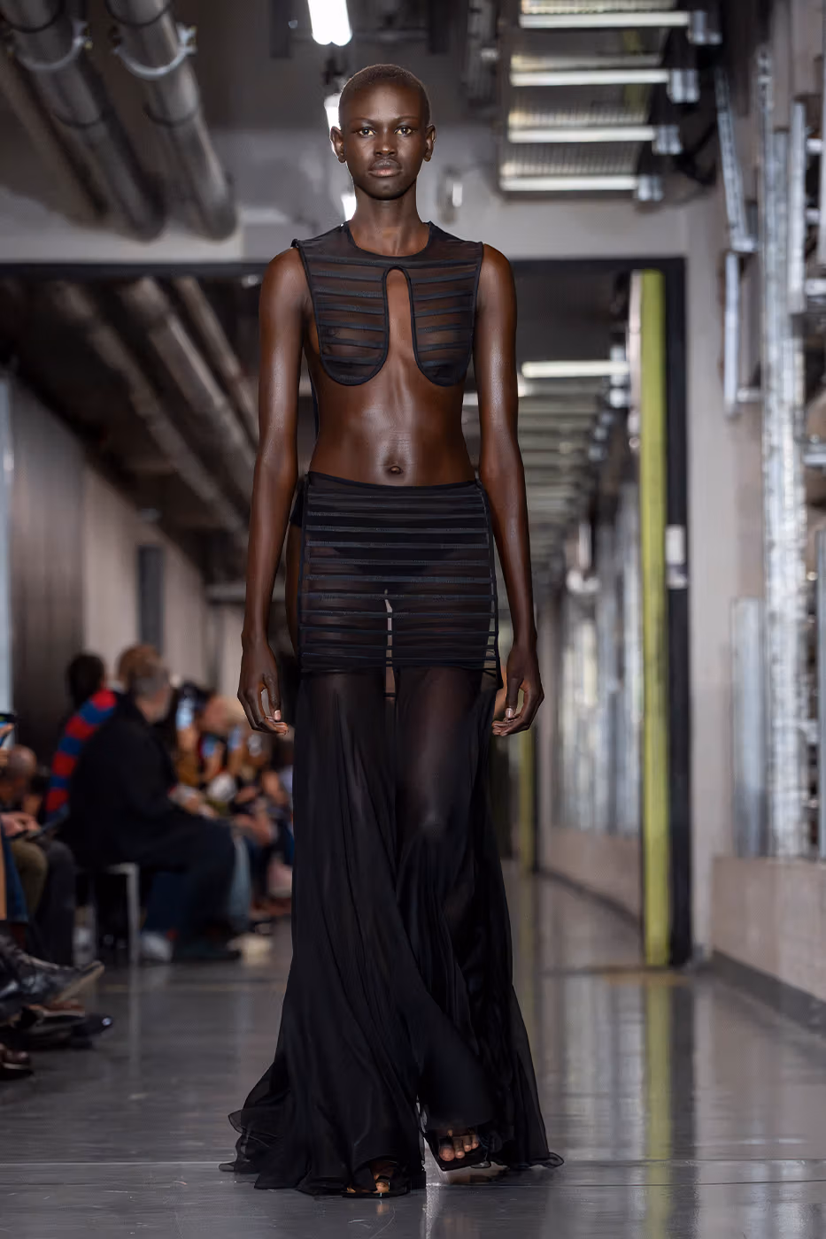 Presented in the basement of the Musée du Quai Branly, Jean Paul Gaultier SS26 creates a dialogue between archive and contemporaneity. Lantink doesn’t replicate Gaultier’s legacy; he reactivates it with a fresh and daring perspective that preserves its subversive energy. This debut marks the beginning of a new narrative for the maison — one where risk and freedom remain its truest form of expression.