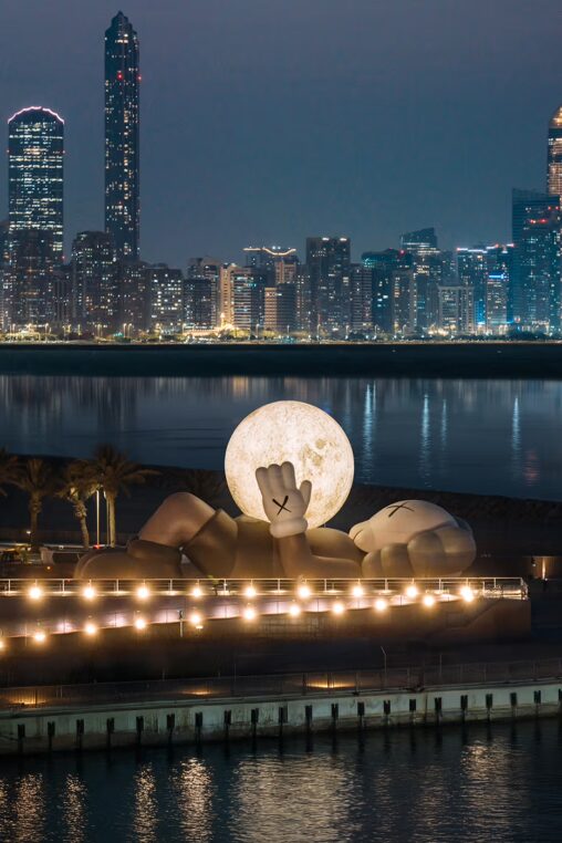 KAWS debuts in Abu Dhabi with a luminous installation that redefines scale, light and the vastness of the desert nightscape.
