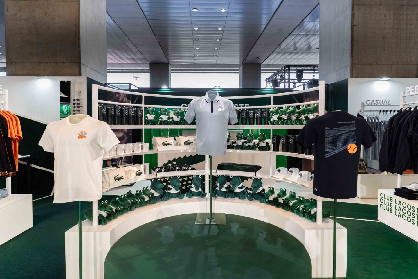 Inside the Caja Mágica, Lacoste has created its own ecosystem, where the shops serve as hubs showcasing both the official kits and the capsule collection, alongside a range of exclusive merchandise that capitalises on the boom in sports merch. The experience is enhanced by customisation options and a selection of the brand’s iconic pieces, from the classic polo shirt to the season’s new essentials.