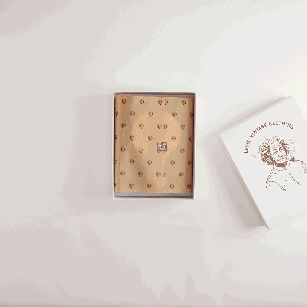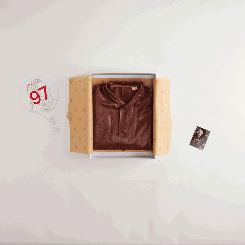 The new LVC Levi’s® Menlo Cossack preserves all the features of the classic design. It includes the rounded collar, distinctive cuffs, its short, boxy cut, and brass buckles with adjustable side straps. To highlight its historical value, each jacket is presented in exclusive packaging that includes a replica of bidding paddle No. 97 —the same one used at Christie’s— and a photograph of Einstein wearing it. Each unit is also hand-numbered on the label, reinforcing its limited-edition status.