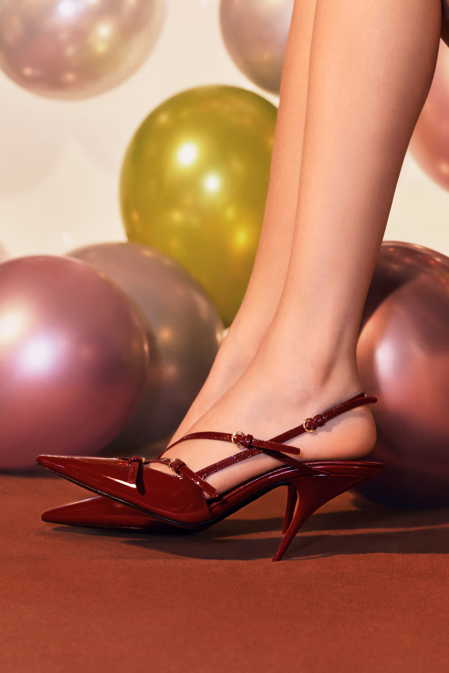 Footwear moves between comfort and elegance. The selection includes soft moccasins, loafers and ballerinas, as well as ultra-flat nylon trainers, patent pumps and kitten heels designed for any festive occasion.