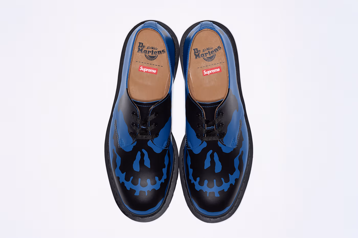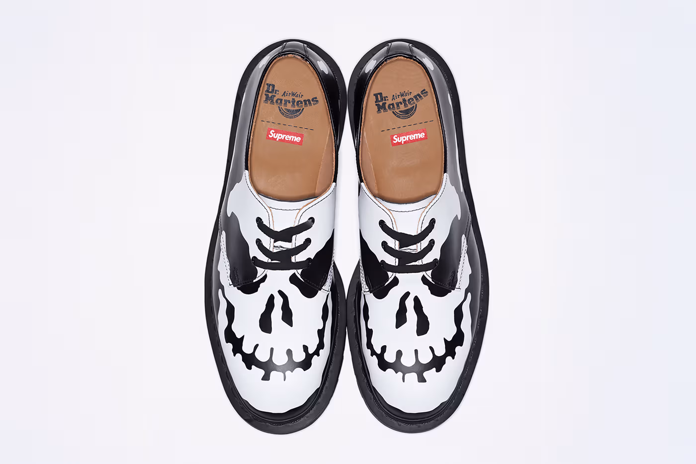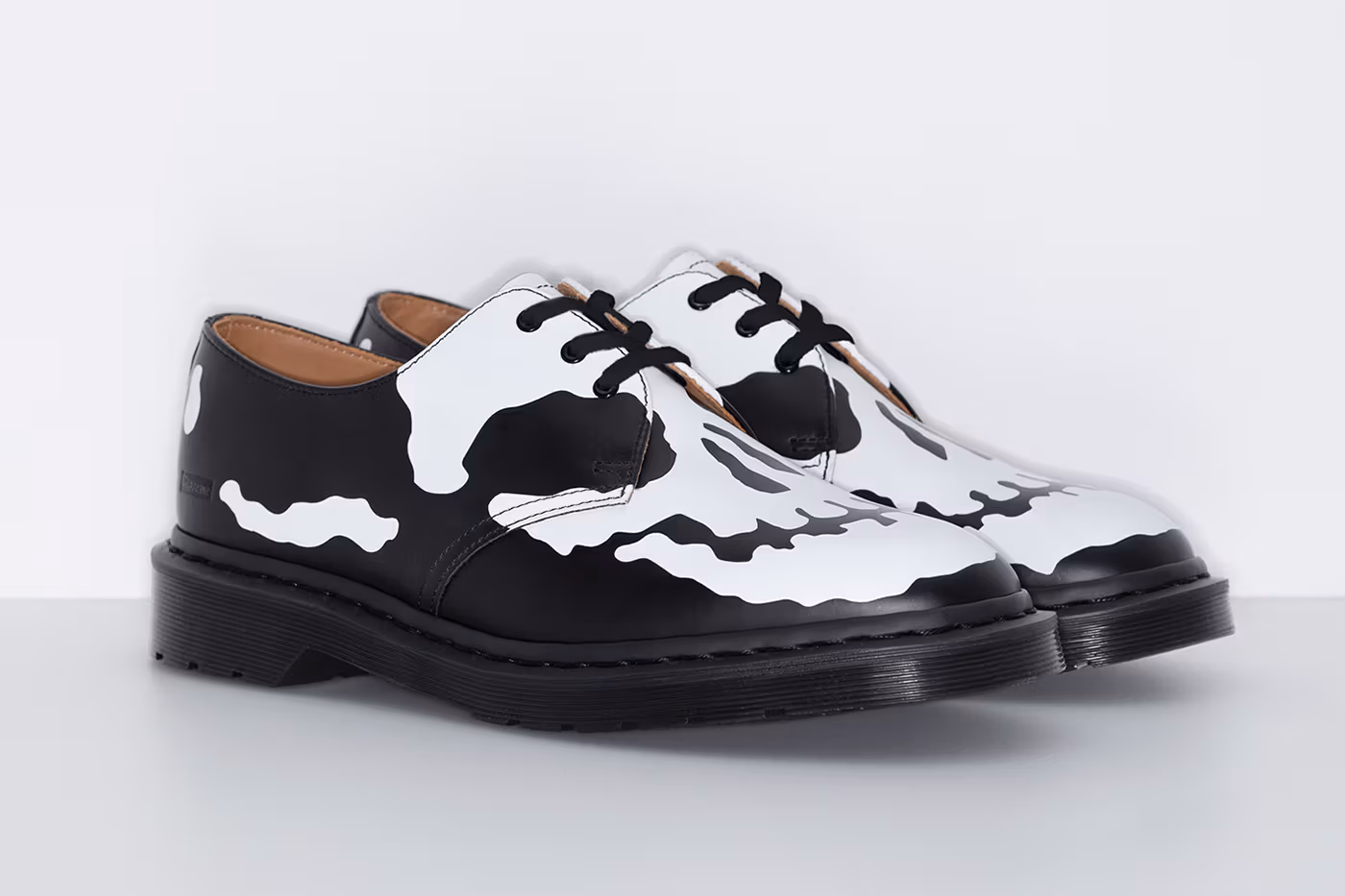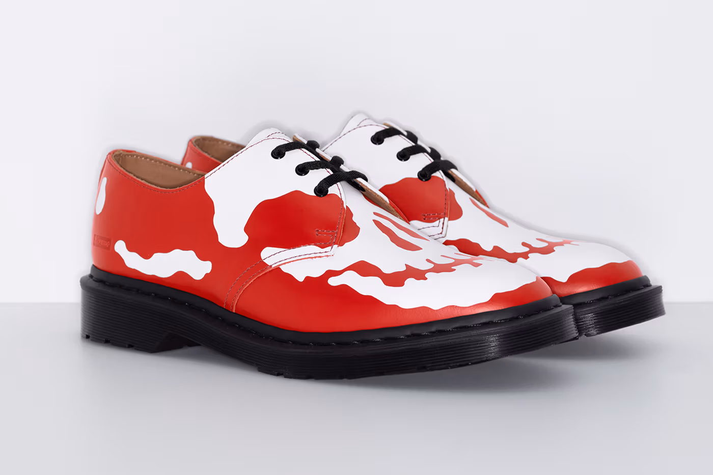The design preserves the elements that have made the 1461 a timeless essential. It retains the smooth leather upper and the well-known AirWair® sole, which provides comfort and durability. On this foundation, Supreme adds the most striking feature of the release, a skull-inspired graphic printed directly onto the leather. The result is an aggressive twist that aligns with the brand’s visual identity.