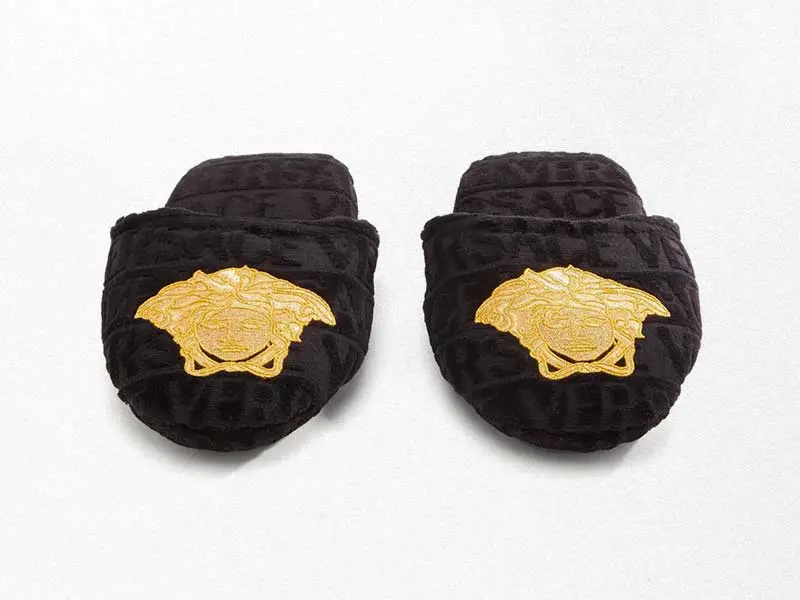 Continuing with the expressions of luxury, Versace has created a pair of velvet slippers embroidered with the logo of Medusa.