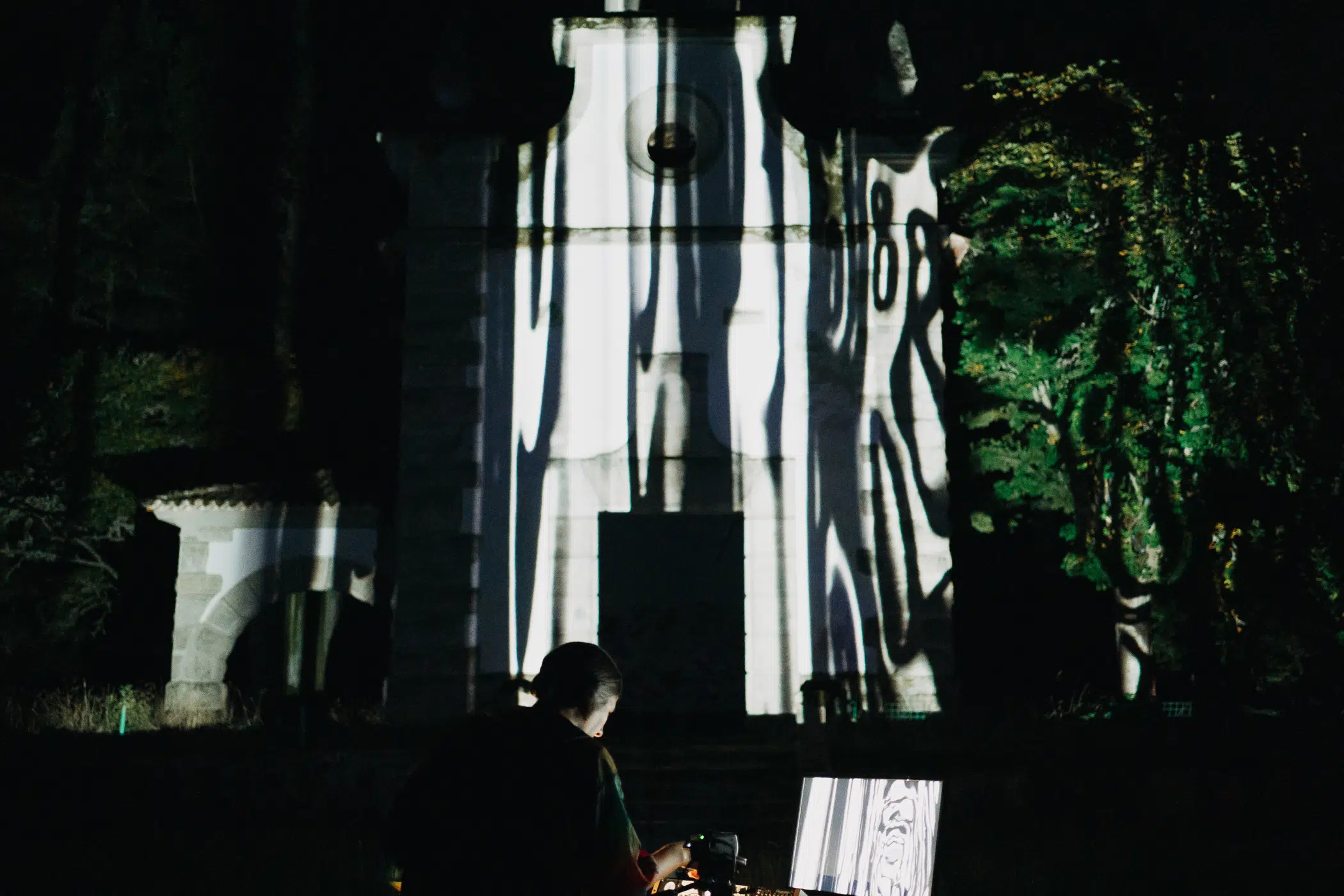 The Yugen Kala brothers, at the forefront of the international electronic avant-garde, together with the visual artist and programmer Marta Verde, deployed a set capable of turning music into a visible element, flowing from the San Cristovo swimming pool like a tsunami that flooded the facades and the natural environment of this corner of rural Galicia.