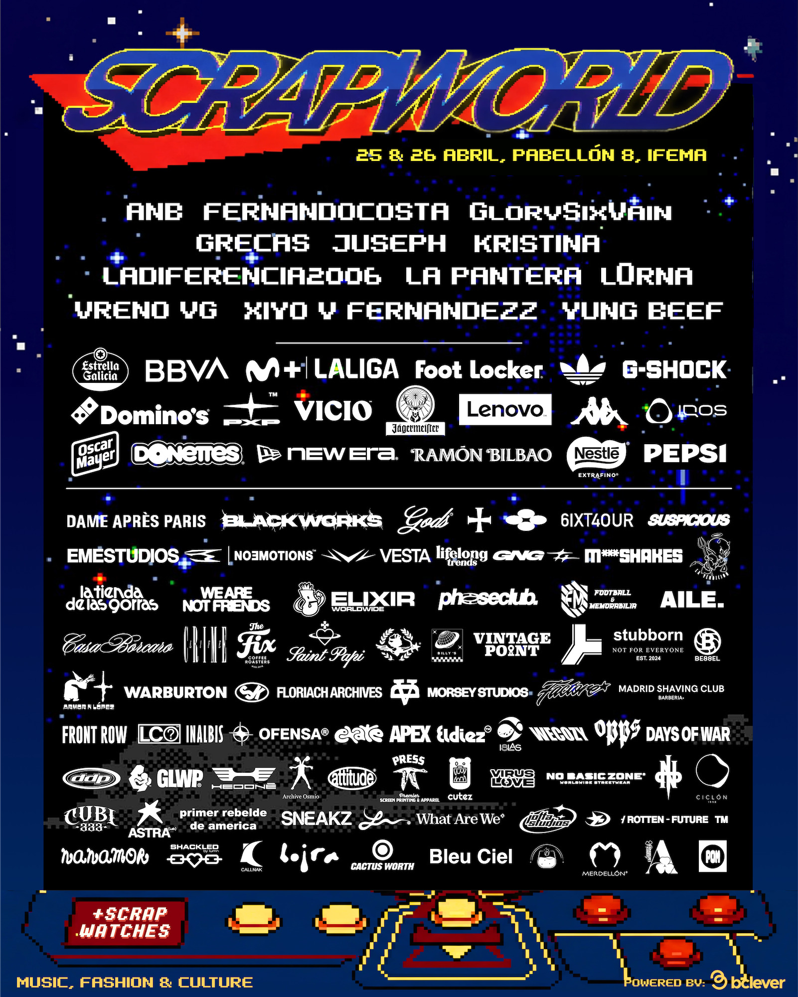 But SCRAPWORLD is much more than just music. We’re talking about a cultural hub where brands, sport, fashion and lifestyle all come together. And this time, giants such as Estrella Galicia, BBVA, adidas, Foot Locker, G-Shock, Domino’s, Pepsi… and many more will be taking part.