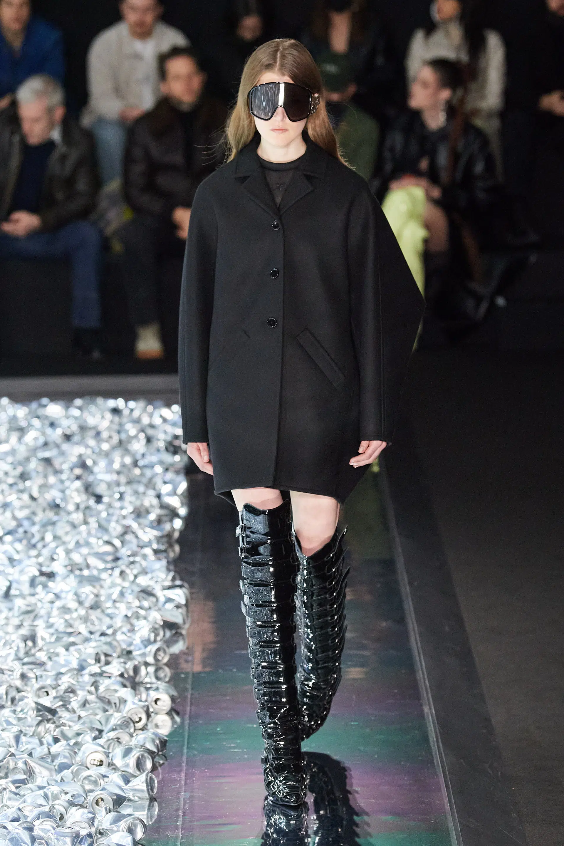 Nicolas Di Felice surprises again with the proposal for the new Courrèges woman. This season, Courrèges goes beyond the sustainable message and makes a parade around an installation of crushed aluminum cans.