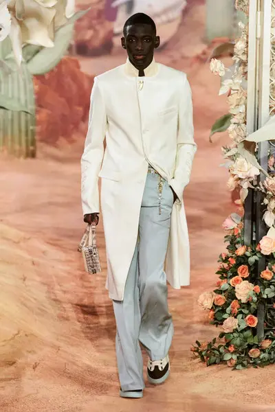 Jones’ tailoring and Scott’s streetwear symbiosis has brought magic back to the French capital. The Texan rapper’s desert of cactus, sand and dead vegetation meets face to face with the rose garden that Christian Dior was so passionate about.