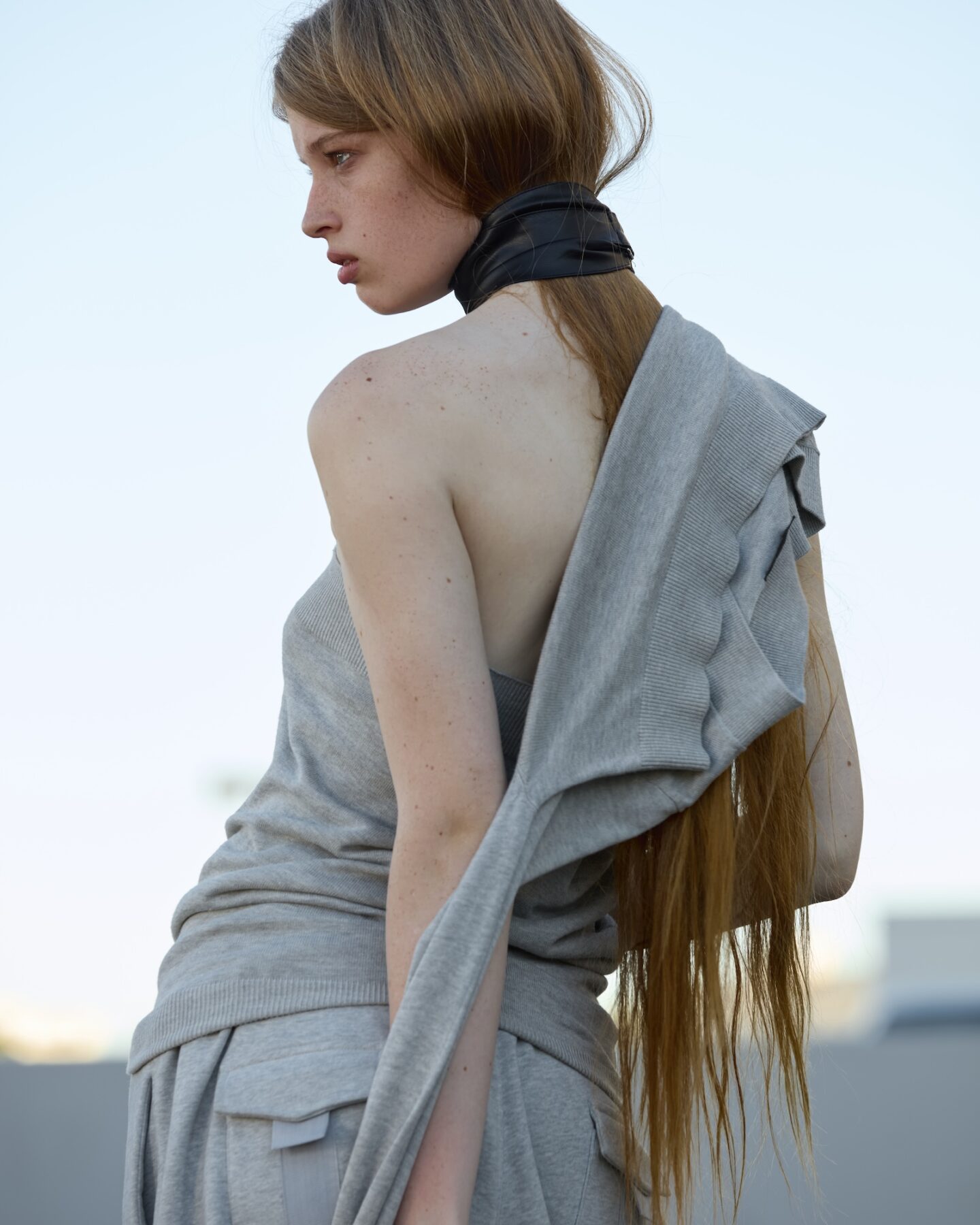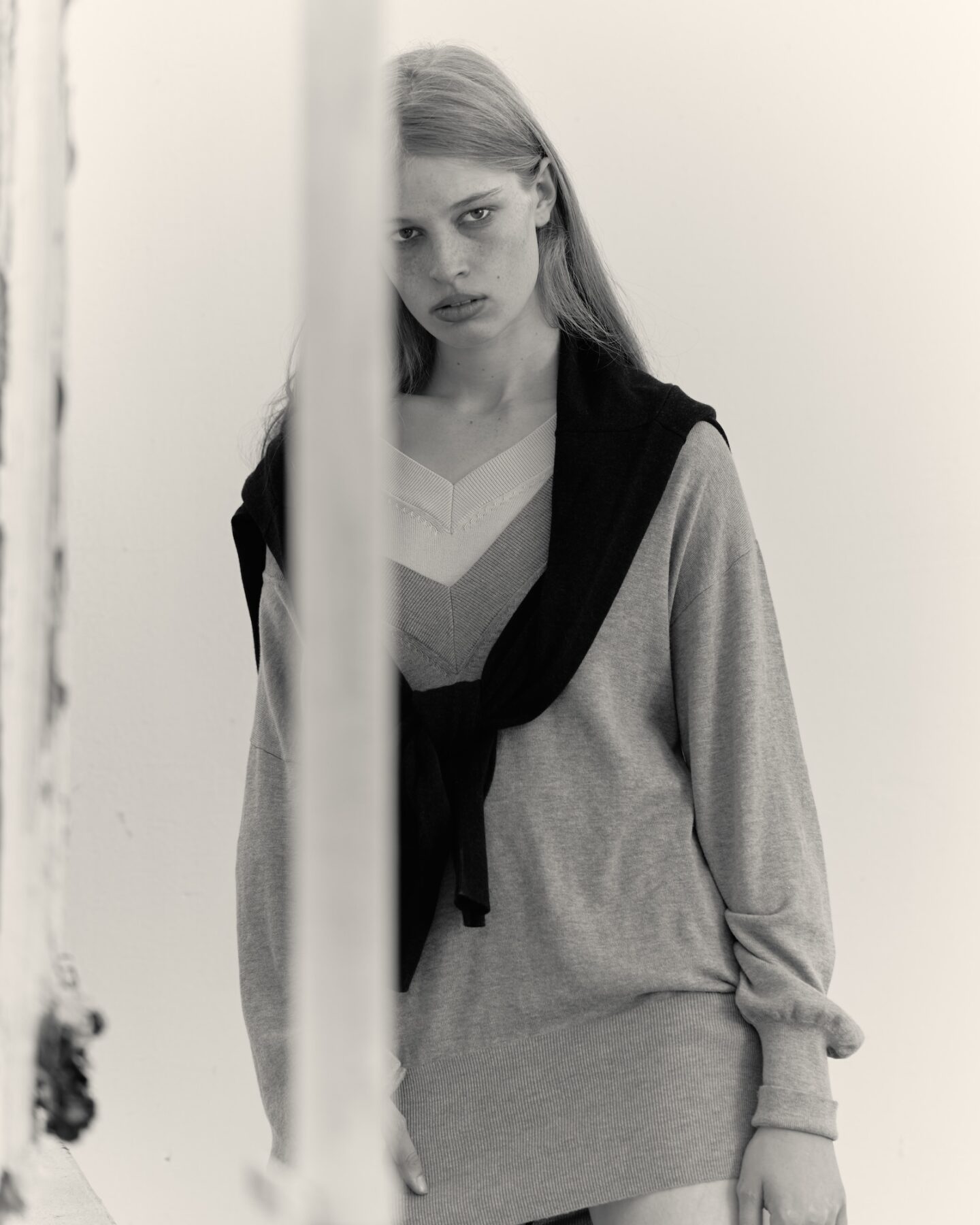It is in this duality that Capsule 021 is constructed, a collection that looks forward without breaking with the past, finding beauty in contrast. The presence of Vivian Jenna Wilson reinforces this discourse, as her image brings a contemporary and honest energy.
