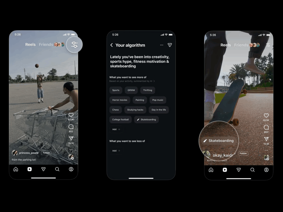 The new control is accessed through an icon located in the upper-right corner of Reels. Tapping it displays an AI-generated summary featuring labels such as “creativity”, “sports hype”, “fitness motivation”, or “skateboarding”. From this menu, users can boost, mute, or add specific topics. They can also choose very niche interests that don’t fit into standard categories.
