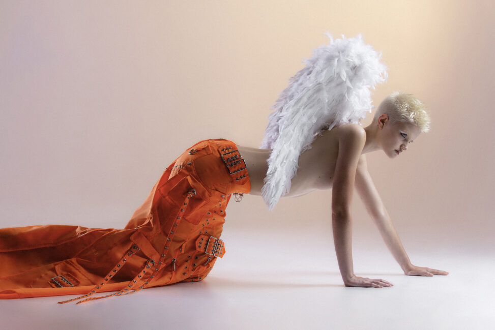 (D) – La libertad sexual y del individuo representada desde los extremos. En la colección se puede reflejar desde un colorido dulce hasta una temática BDSM mucho más agresiva. En esta editorial hemos querido jugar con los opuestos, entre ángel y demonio, o entre luz y oscuridad, desde un punto de vista más espontáneo y diluido.