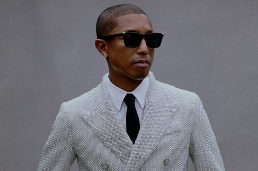Y como no podía ser de otra forma, el aclamado artista que tanto inspira a Pharrell también acudió al encuentro, vestido con un look a medida que contaba con una sobrecamas confeccionada en jacquard de lana Príncipe de Gales y un pantalón negro en el mismo material con doble pliegue. Lo llevó con una camisa de popelina blanca bordada a mano con una de sus obras de arte e incrustaciones de perlas, y un sombrero trilby.