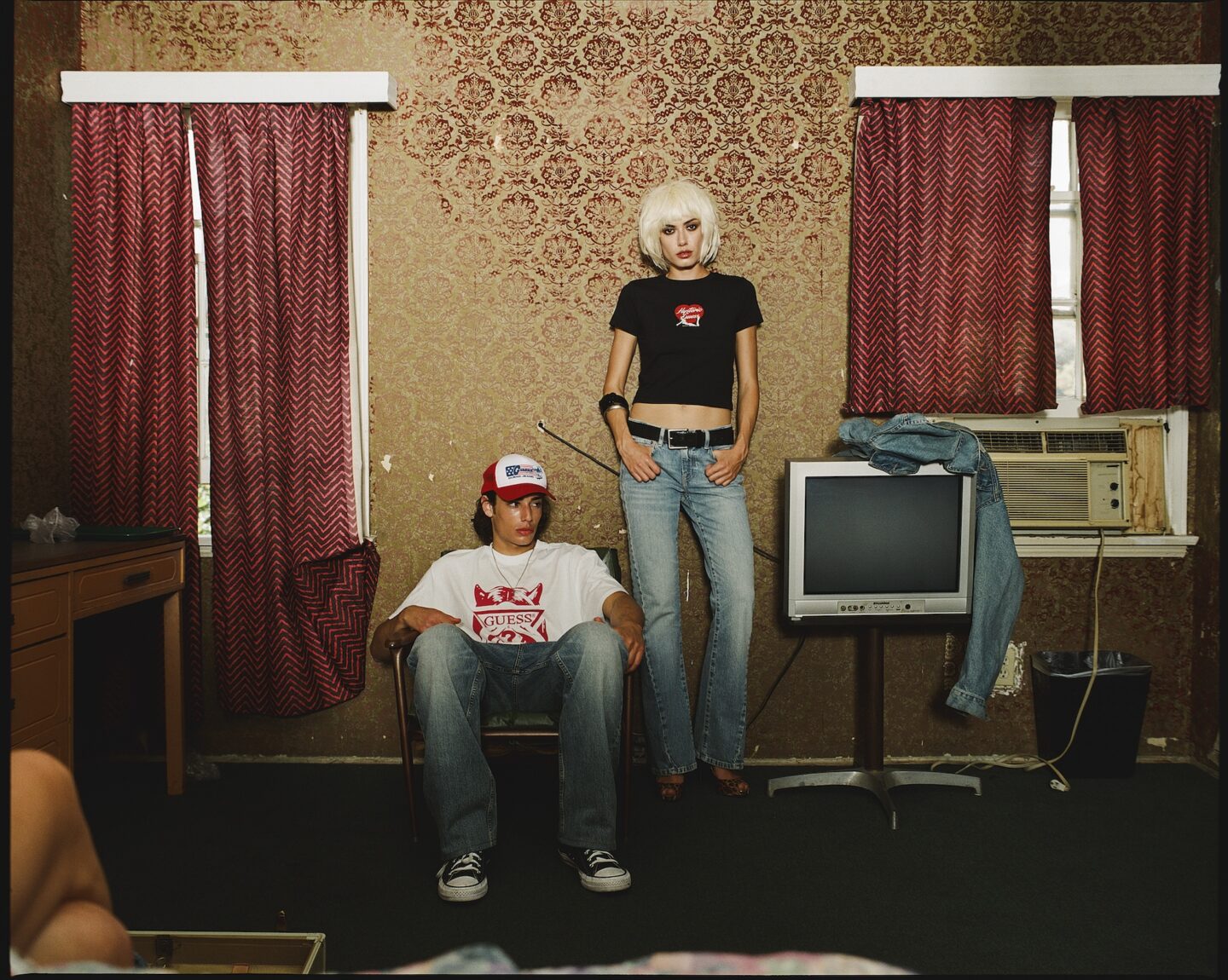 Esta temporada, GUESS JEANS y HYSTERIC GLAMOUR se unen para construir una nueva narrativa cinematográfica que ha sido desarrollada en un motel, ofreciendo una historia en tres actos. El primero, situado en una habitación cargada de tensión estética; el segundo, en un set de estudio diseñado a medida; y el tercero en un exterior bañado por el sol de California.