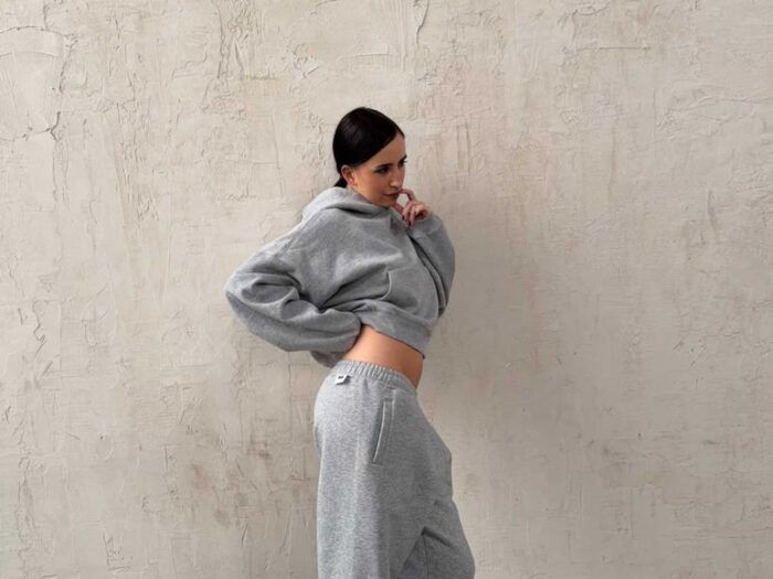 (C) – El fit y el tacto. He sido obsesiva con eso. No quería el típico chándal sin forma: quería que estilice a las mujeres, que abrace el cuerpo y que te haga sentir guapa y sexy incluso en ropa cómoda. También la composición del tejido, los patrones y los pequeños detalles marcan la diferencia. Es streetwear pensado específicamente para mujeres, no una versión femenina de algo masculino.