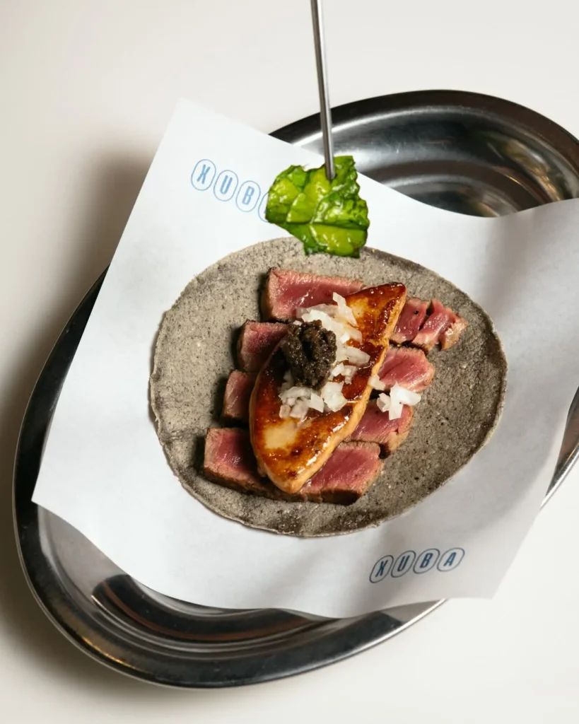 Este sábado comeremos en Xuba Tacos, el proyecto del reconocido chef Antonio Sáez, y su socio Raúl Salcido, demuestra su amor por la gastronomía mexicana en una carta de street food que abarca desde tacos clásicos como ‘al pastor’ o el cochinita pibil’ hasta algunos más elevados como el taco de solomillo rossini con foie a la plancha y salsa trufada, servidos sobre sus características tortillas de maíz azules. De acompañante, una michelada con la que dar paso a la fiesta.