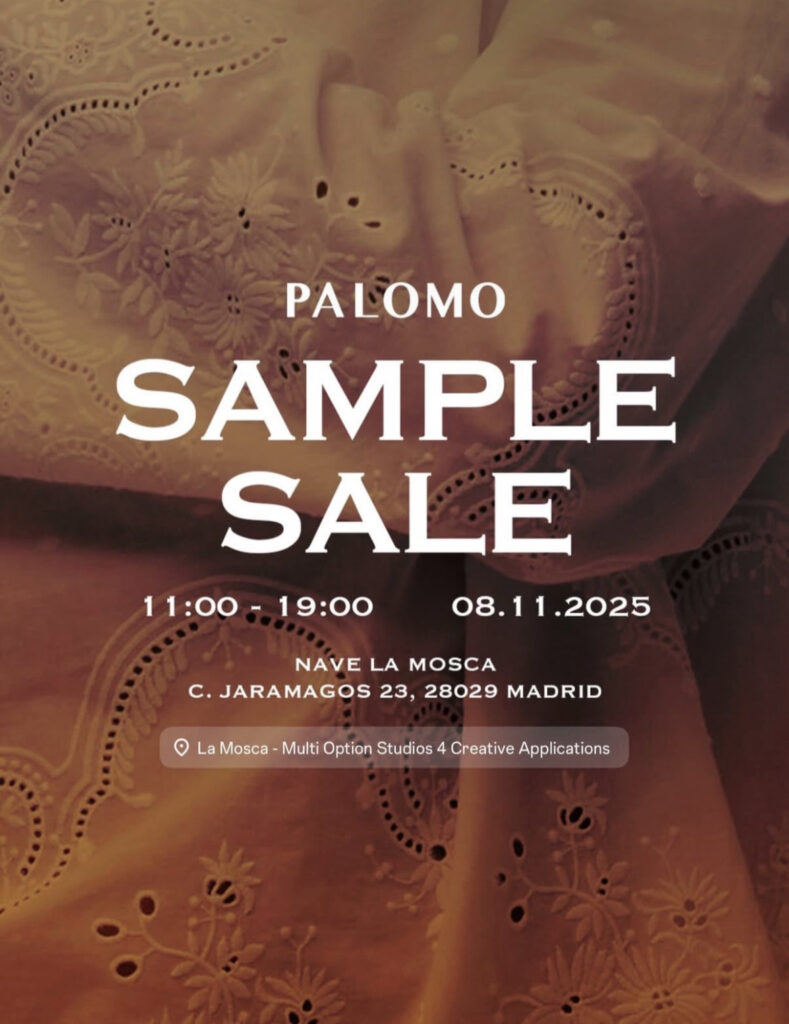 Este sábado 8 de noviembre, Palomo Spain celebra su esperada Sample Sale en Nave La Mosca (C. Jaramagos 23, Madrid), de 11:00 a 19:00 h. Una oportunidad única para hacerse con piezas icónicas y prendas de archivo del diseñador cordobés a precios especiales. Entre bordados, tejidos nobles y siluetas fluidas, la cita promete reunir a amantes de la moda, coleccionistas y curiosos en busca de ese toque Palomo que une teatralidad, artesanía y deseo.