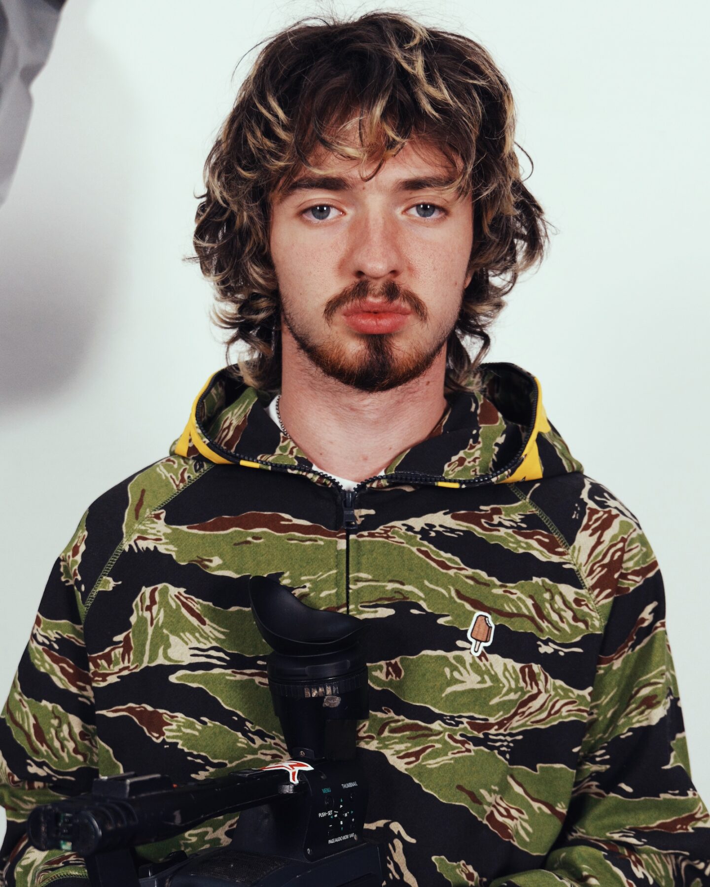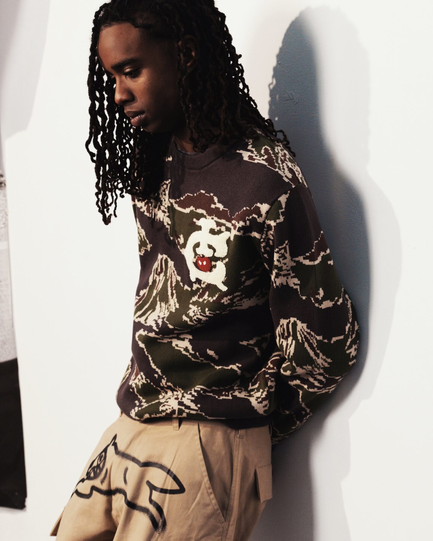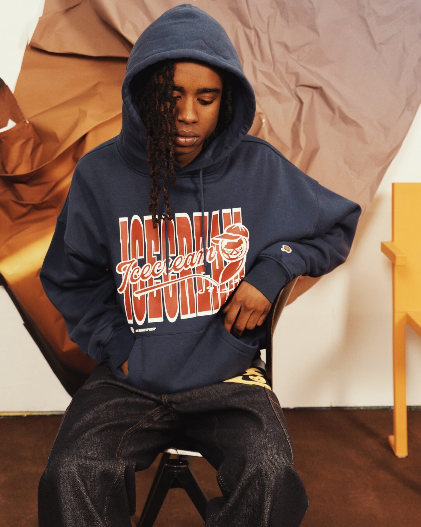 A medio camino entre el workwear, el sportswear y la cultura skate, ICECREAM Pre-Spring 2026 se compone de piezas pensadas para durar y no dejar de moverse. Lonas gruesas, ripstop militar, sudaderas con ribetes de satén y pantalones de chándal con estampados de camuflaje de tigre conviven con el denim tratado y pintado con spray.
