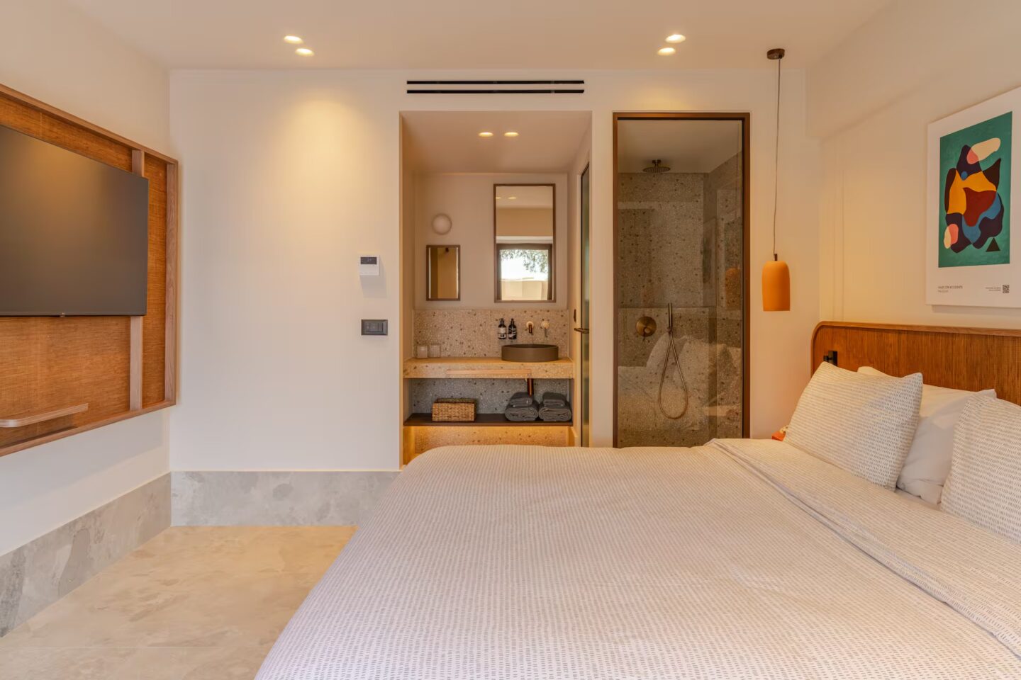 El resort cuenta con 84 habitaciones y suites diseñadas bajo una estética contemporánea, luminosa y funcional. Muchas de ellas ofrecen vistas al mar, mientras que otras incorporan piscina privada para quienes buscan un plus de intimidad. Entre las tipologías más destacadas se encuentran The Loft, con terraza y piscina privada, y The Beach House, una suite premium de dos dormitorios con amplios espacios exteriores.